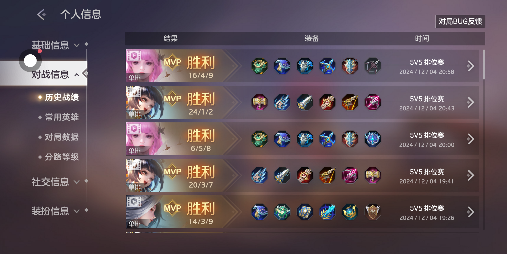 今日战绩分享 目前7连胜评论=明天你的战绩 真的不接?也欢迎大家来加我一起玩!目前段位:铂金一 预计明日达到:红钻游戏ID:婉诺莹 粉色头像的那个是帖主五路都会 周末拉可以开麦 可以打自组娱乐赛可以匹配 可以排位 可以赛事 可以秘境都行擅长英雄:精卫(通常射手、打野)雅典娜(通常对抗、打野)忘川(通常辅助、法师)张出尘(通常对抗、打野)艾露妮(通常辅助)等补位英雄星盘满级 争峰赏金中路四段 打野辅助三段(温馨提示:帖主拿忘川辅助一般出法师装)然后就是之前我建的公会我给退了所以现在回归重新建了一个 叫异心恋很期待大家的加入!大家晚安~!