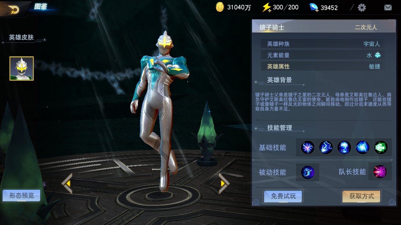 镜子骑士是速度属性的稀有级英雄,镜子骑士能够制造出镜子,还能在镜子或像镜子一样反光的物体之间瞬间移动,这也导致他过分的追求速度而造成力量的不足,但镜子骑士极快的移动速度能让他可以灵活的躲避掉很多杀伤力巨大的技能,从而提高自己的生存能力,特别是对于躲避那些伤害巨高的boss技能,镜子骑士可以说是新手玩家的不二之选。