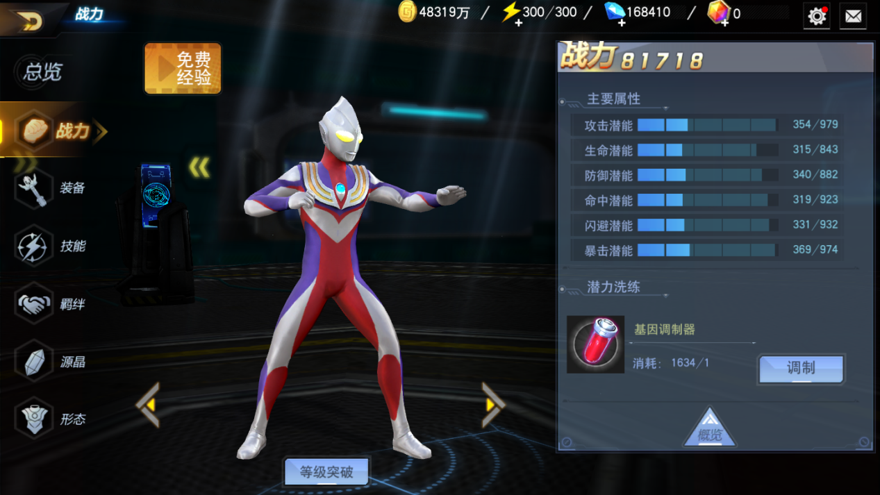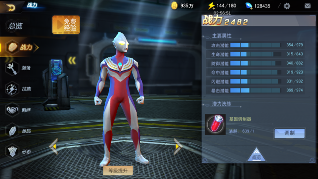 玩家可以消耗基因调制器对属性进行随机刷新,可能会造成战力提高,也可能造成战力降低,但是整体趋势是在往上升的,奥特君已经尝试过了,大约使用400个基因调制器就能将所有属性刷满,运气好的玩家甚至使用200个左右就能将属性刷满,这也是一个看运气的玩法。