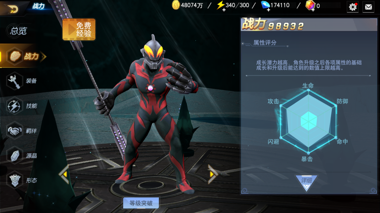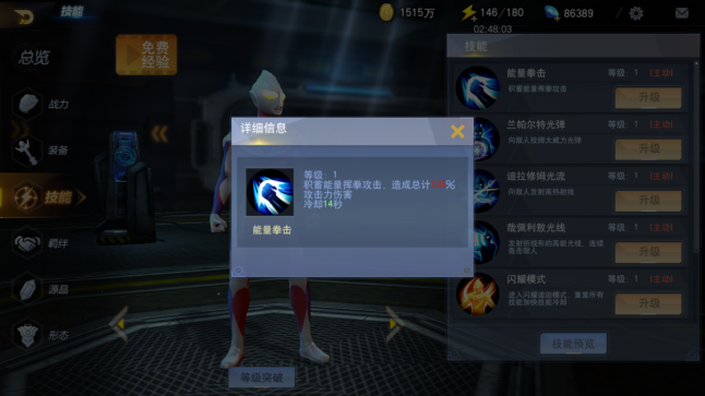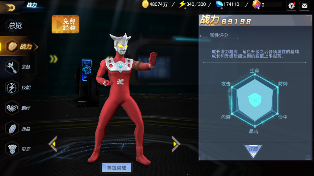 但是角色品质好也不代表一定很厉害,在《奥特曼宇宙英雄》中,角色强度是随着星级变化提高的,角色技能的解锁也和星级挂钩,星级越高,可以使用的技能就越高,因此,获得某个英雄只是成长的开始,玩家需要给这个角色升级,升级达到当前上限后还需要升星才能继续升级。