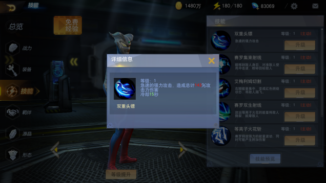 首先我们可以看到赛罗的各项属性并不是很高,但是这并不代表赛罗很弱,赛罗是全属性英雄,这说明他不会被任何其他属性的英雄所克制,从而影响输出,而赛罗的主要输出方式就是依靠他的技能。