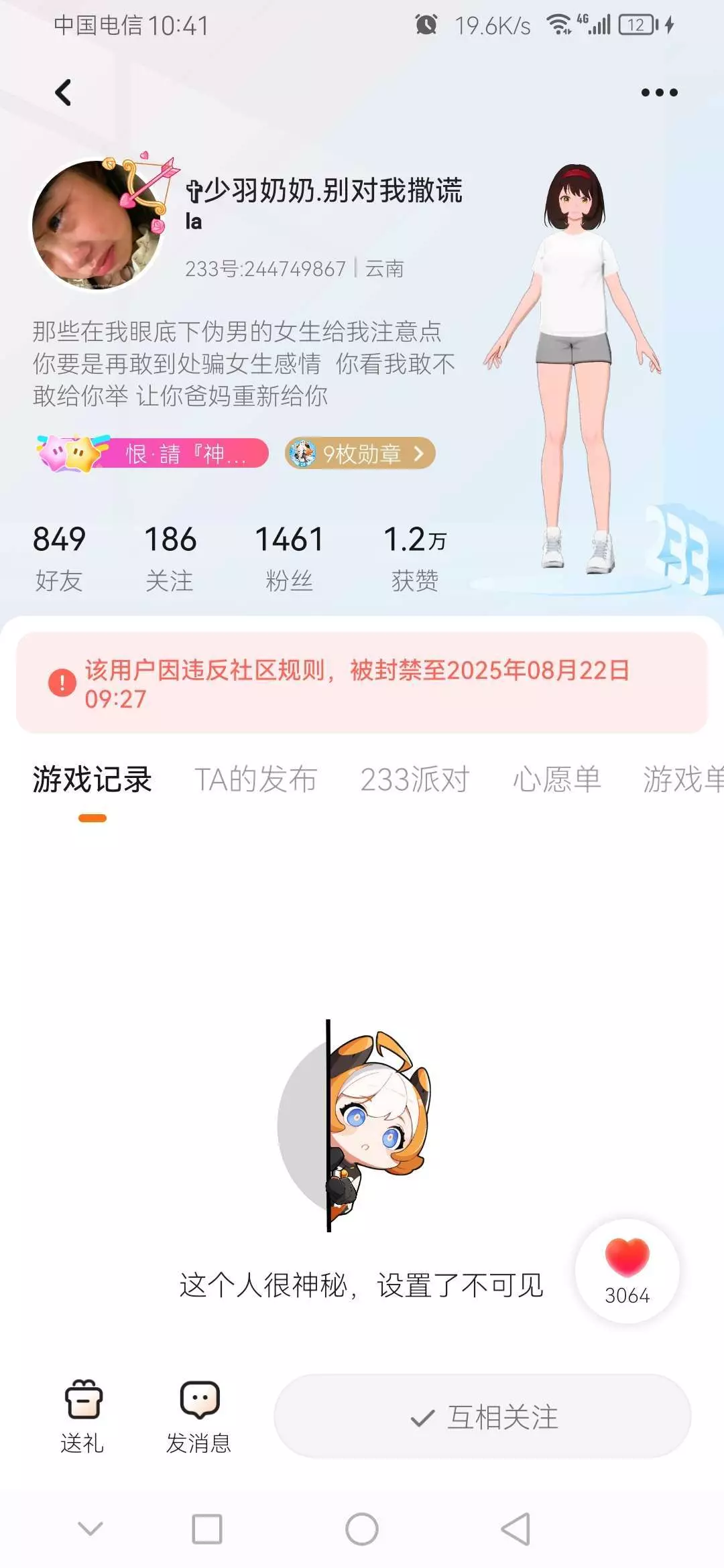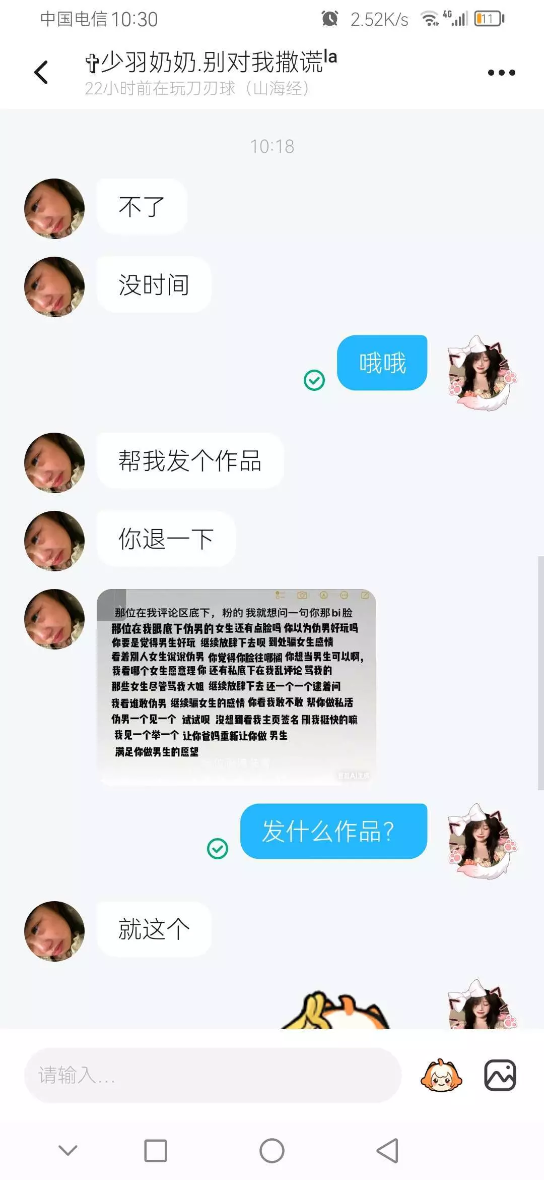 来看一下,第二张图片的人被第一个人驾了我就发的第一个照片的人,他把我第。二个好友他删了之后,又把他举报,号也被封了,第一个人其实是伪男骗了第二个人,被第一个人骗了300块钱。