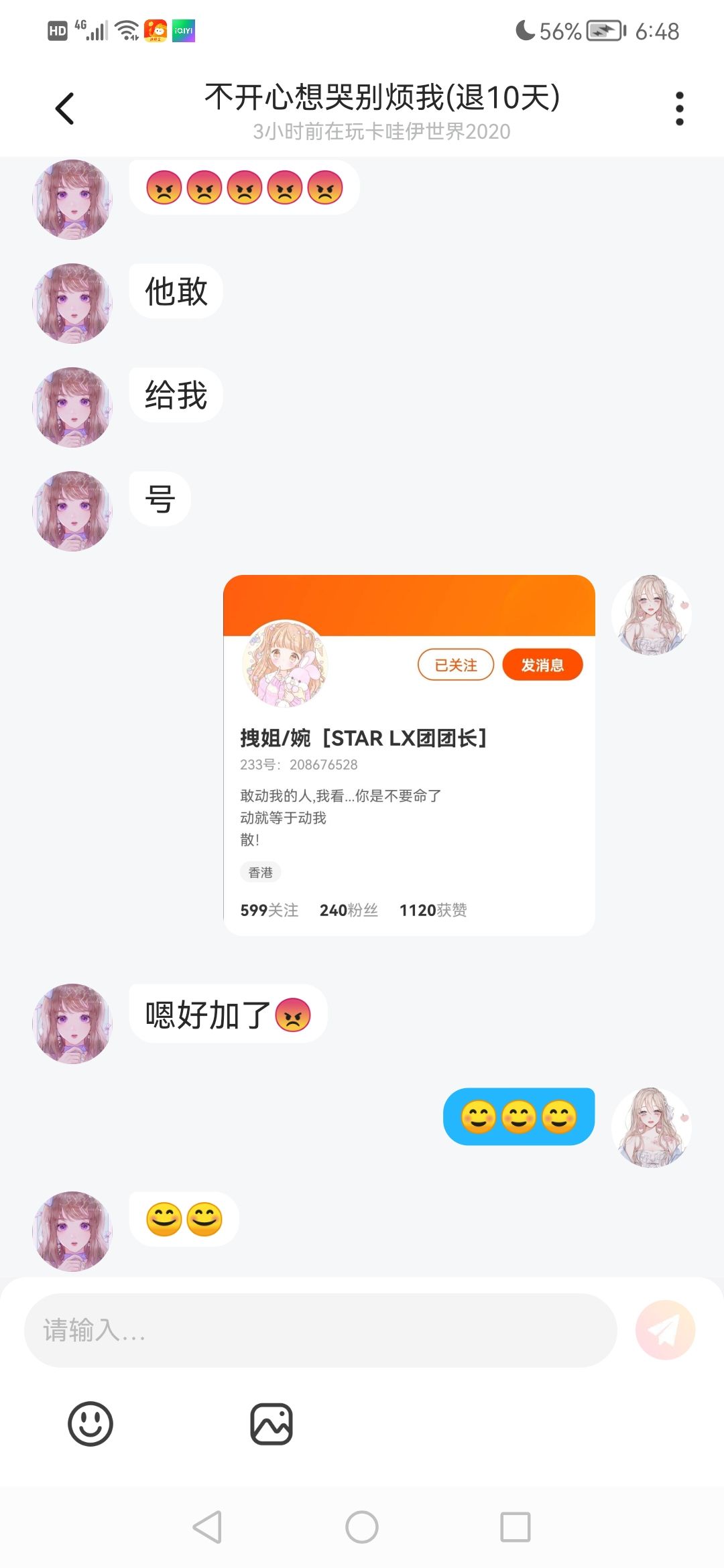 一般情况下我很友好, 不爱骂人,发脾气, 别惹我,谢谢^ω^