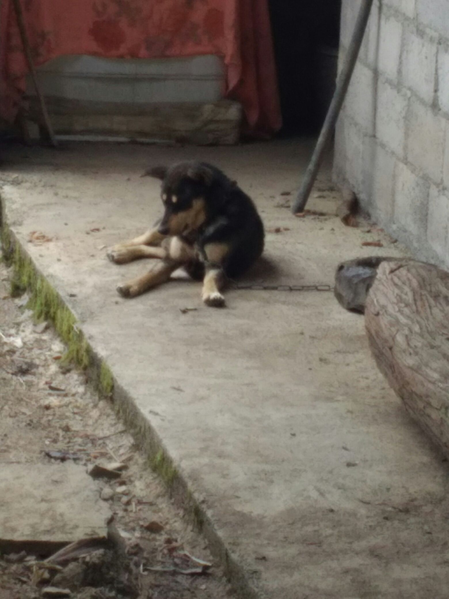 这是我们家的狗狗,感觉好可怜,被铁链锁住😢
