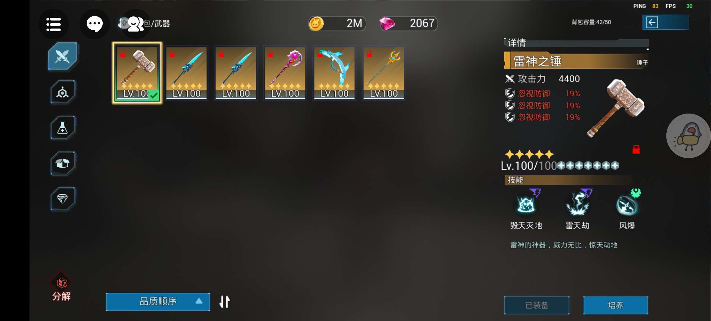 T1是我们的锤子 因为我感觉锤子他稍微有些笨拙第2技能在空中飞下来后还会从僵尸(参考物)的脑袋上先踩一下然后再弹开 打开后你再打僵尸僵尸就会打你 并且我感觉锤子的第1个技能和第2个技能后摇很大 释放完因为后摇怪物基本上都会来打你 但不妨有一些大佬玩的很好直接秒僵尸所以放到t1