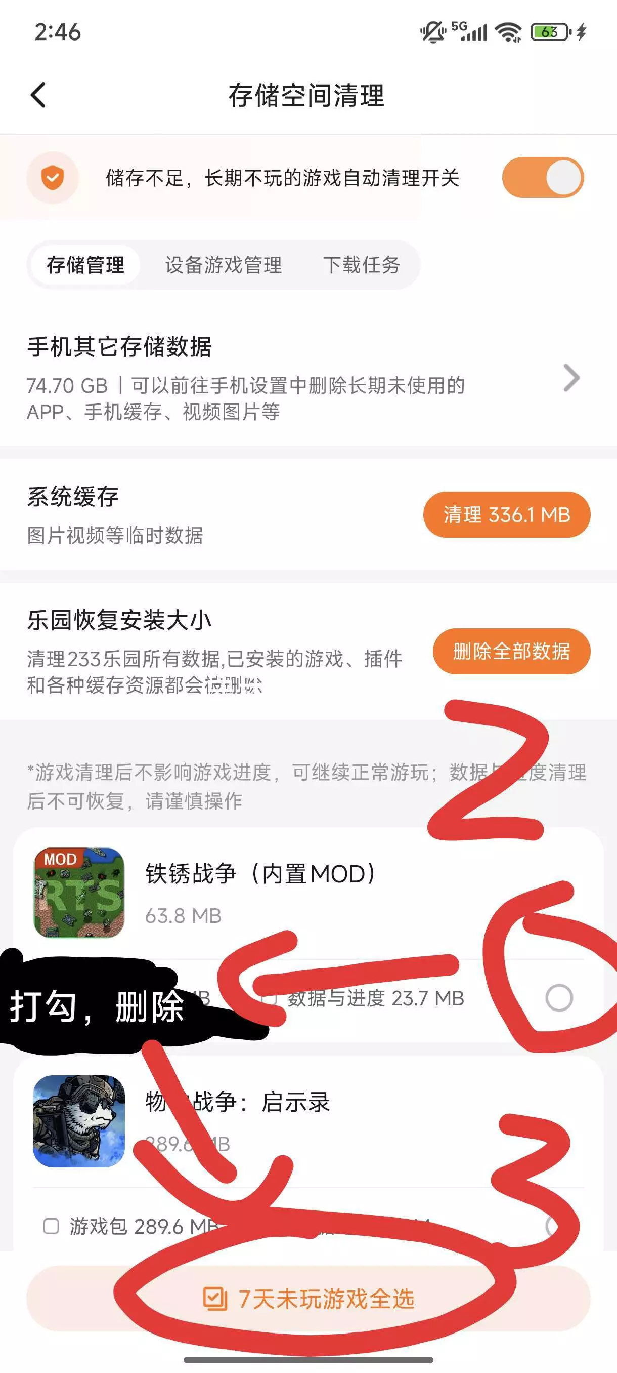 此方法是我目前实践出来的方法。 1.长按233乐园图标点开储存清理。 2.将此版本铁锈战争内部数据清除。 3.重新下载此版本,铁锈战争。 还有更多方法,欢迎大家加入讨论。(希望此帖子不要沉下去。)