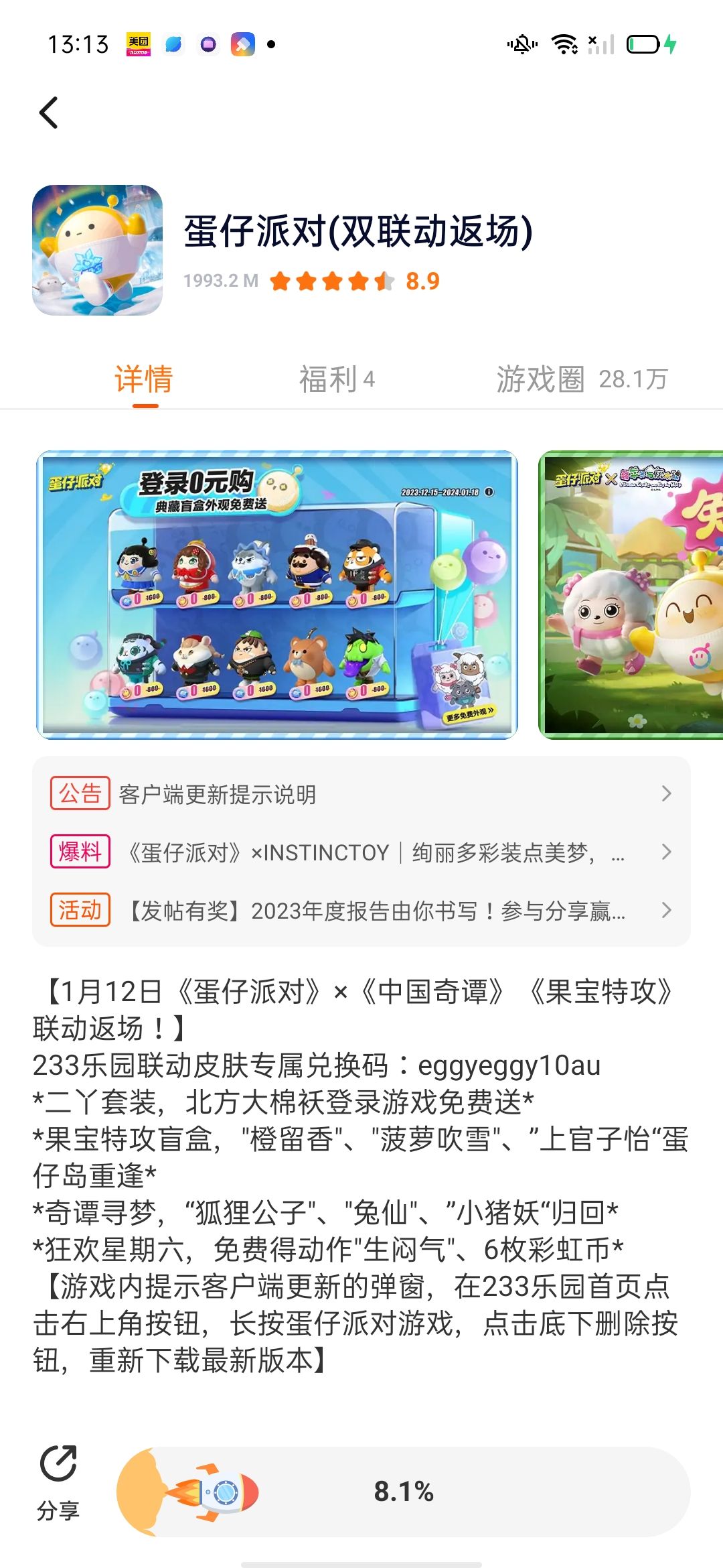 蛋仔派对真的太好玩啦 ,我还要感谢他的福利 请看图片