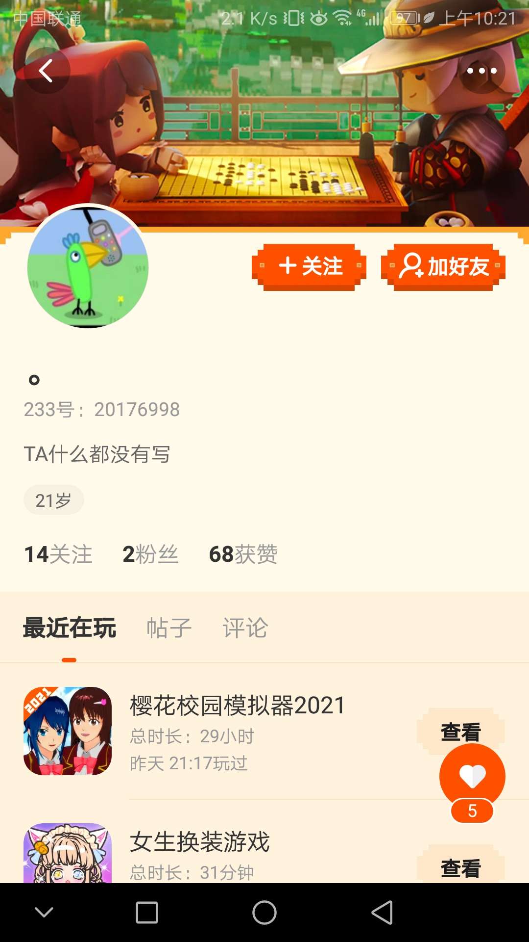 再说一件事,我233里面不能跟好友聊天 ,希望大家不介意!