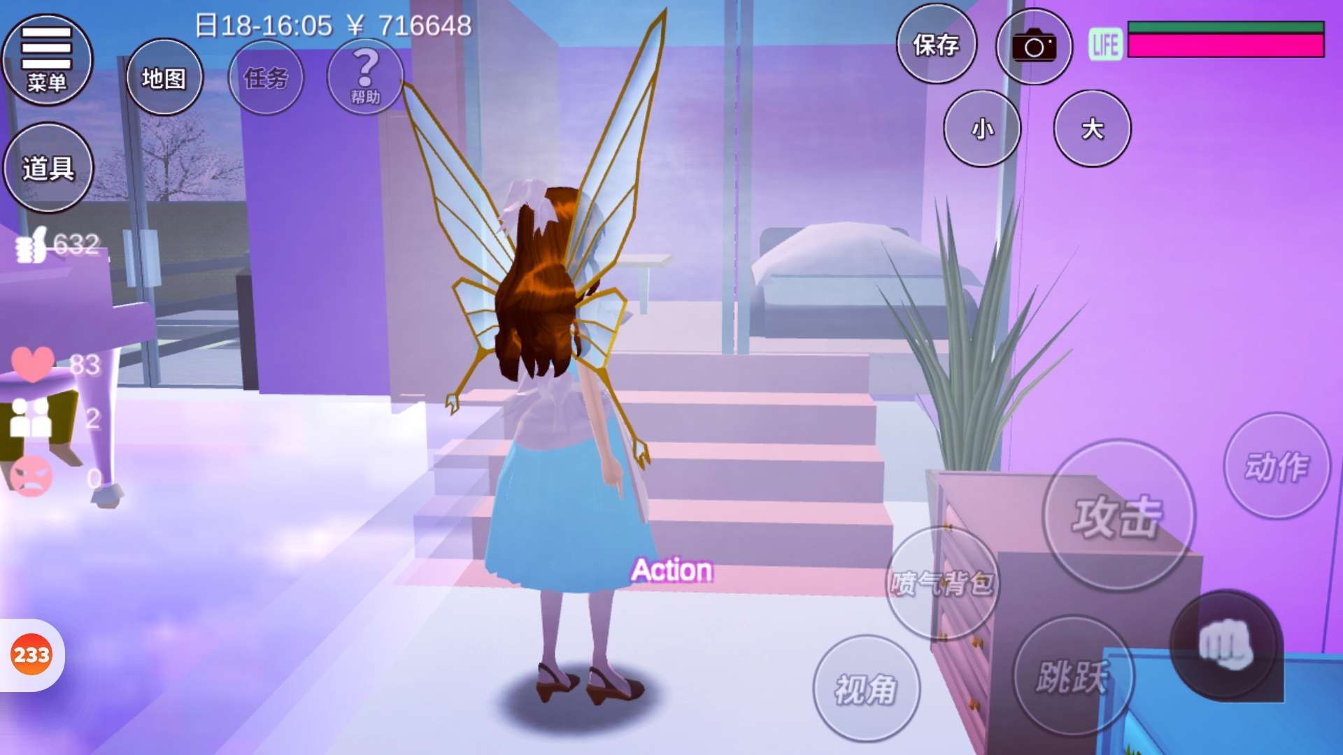 女主对面的就是蓝毛的小屋了,她们俩的屋子一样,只不过颜色不同。