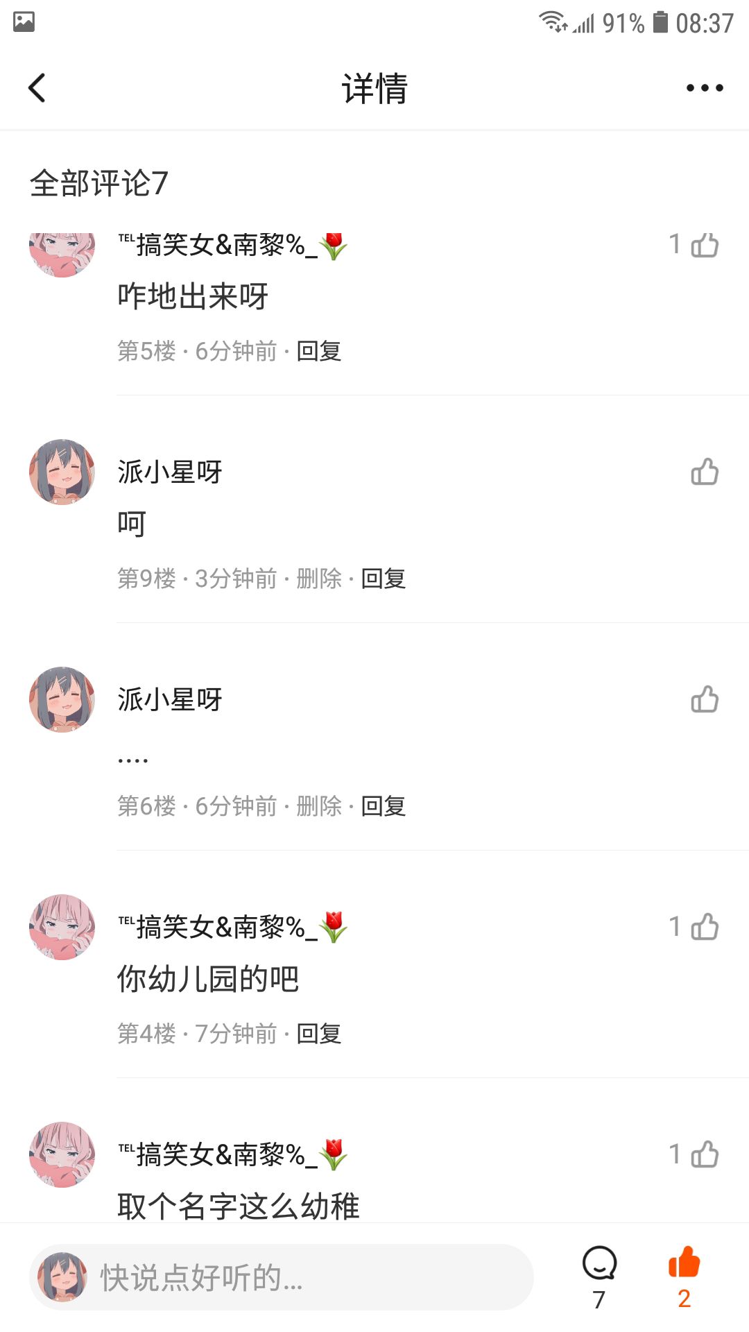先说这个帖子是他骂我的,说我名字不好听...这就很无语了....