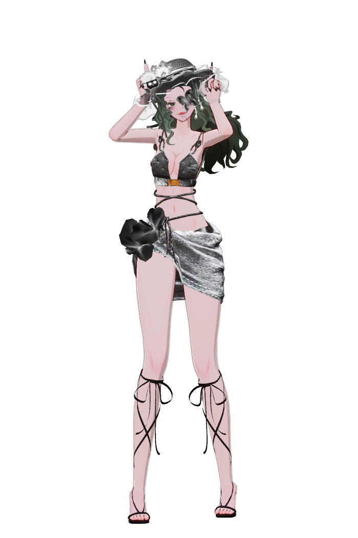 这是一位名为骼骨的魔族,头戴装饰着骷髅头与弯角的华丽头饰,银白色长发垂落,搭配黑色玫瑰眼罩,单眼露出猩红瞳孔。身着剪裁大胆的黑色连体装,腰间与腿部的破洞设计增添邪魅感,大腿两侧的花纹纹身更显神秘。她侧身而立,双手姿态妖娆,黑色长指甲与金属配饰点缀其间,背景的灰暗裂纹与烟雾效果,进一步强化了哥特式的魔族氛围#我是穿搭至尊 #申请精华#吗喽精选