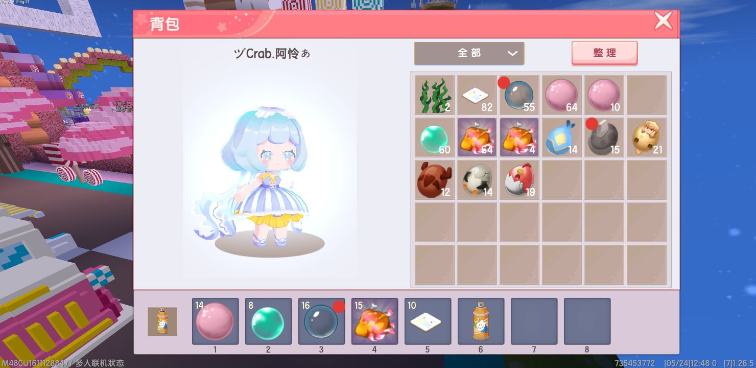 社交大厅新玩法 “全民养牛”(前几天自娱自乐的时候无意间发现的哈哈哈😋)例图:需要准备的道具有这些(标红点的)牛牛需要用咕噜兽召唤(没有咕噜兽的玩家可以找我要,我正好闲着没事)迷你号:735453772💩变小球需要这个礼盒获取靠近礼盒就可以随机获得一个道具不是点礼盒!!!不是点礼盒!!!不是点!!!!不是点!!!!🙉咕噜兽刚进房间的时候就可以召唤生物蛋,长按跳跃会有一个大金蛋,可以随机获得(品种有限,只有部分生物蛋可以召唤)这是咕噜兽可以刷的生物蛋,只有牛牛可以跟随,其他的生物蛋尽量不要放太多,会很卡(本来就卡,放太多的话卡上加卡💔)刚下完蛋的咕噜兽需要冷却一段时间,等到它周围出现了一个小金蛋,就代表可以再次“下蛋”了(继续压榨,我真是个万恶的资本家😎)长按跳跃会下蛋(会有两个金蛋哦)生物蛋是随机获得的,我也不知道下一个会获得什么需要准备的东西就这两个,准备好后就可以找个没人的地方施展魔法了😈把牛牛放出来,用变小球打它(只能是变小球)然后牛牛就会跟着你了(你不会掉血,牛牛也不会被攻击,但是坐骑会,所以小心一些熊孩子😱)不要离开牛牛太远,超过牛牛的跟随范围的话,运气好还能找到它然后继续遛牛,运气不好的话就会有别的玩家趁虚而入,你的牛牛就变成别人的牛牛了😭💔牛牛可以说是无敌,弹板对它没用(你骑坐骑的话弹板也对你没用)变小球只能让它变小,雪球和泡泡球对它没用,但是不能让牛牛去有樱花树叶的地方,它会卡住(幸运的话不会)需要用变小球打它,然后离远一点,也别走太远,在牛牛的跟随范围里就可以等变小时间过去,他就会从地里钻出来继续跟着你,退出联机大厅的话,可以把牛牛卡在树叶里,这样别的玩家也可以玩到了😊