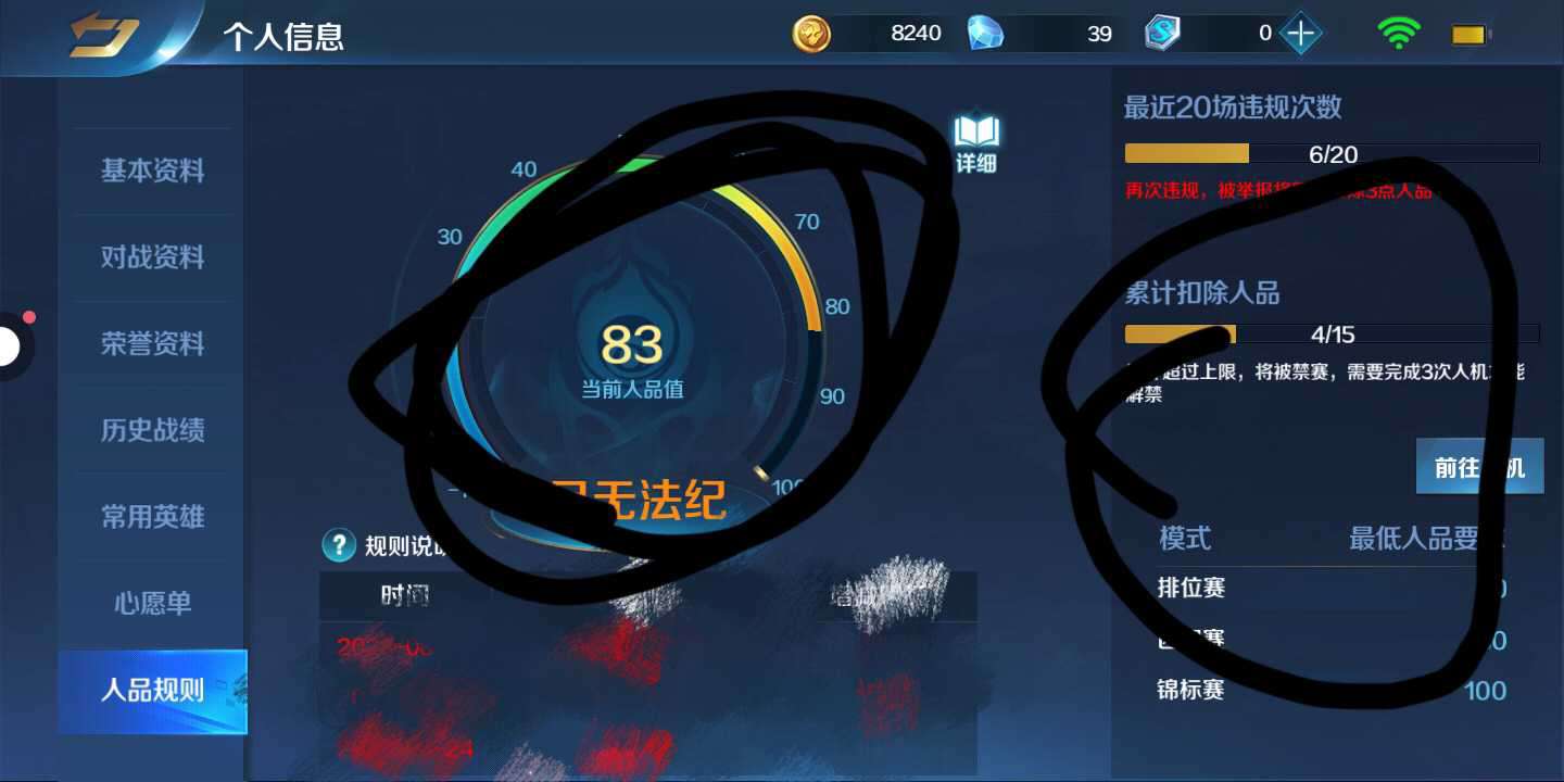我打算永远不玩这个游戏了 ,我举报人家才扣几个人品 ,人家举报我死扣七个去 。强烈不建议大家玩 ,太恶心了 ,这就是个烂游戏 ,我在打算公布到快手和抖音上 !