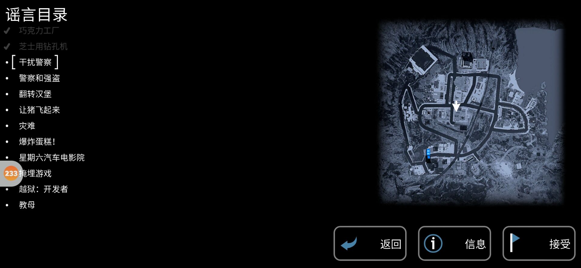 1. 巧克力工厂任务攻略2. 芝士用钻孔机任务攻略3. 干扰警察任务攻略4. 警察和强盗任务攻略5. 让猪飞起来任务攻略6. 翻转汉堡任务攻略7. 灾难任务攻略8. 爆炸蛋糕任务攻略9. 星期六汽车电影院任务攻略 10. 掩埋游戏任务攻略11. 越狱:开发者任务攻略 12. 教母任务攻略13. 四肢麻醉山羊解锁攻略14. 油腻山羊解锁攻略15. 20个奖杯位置