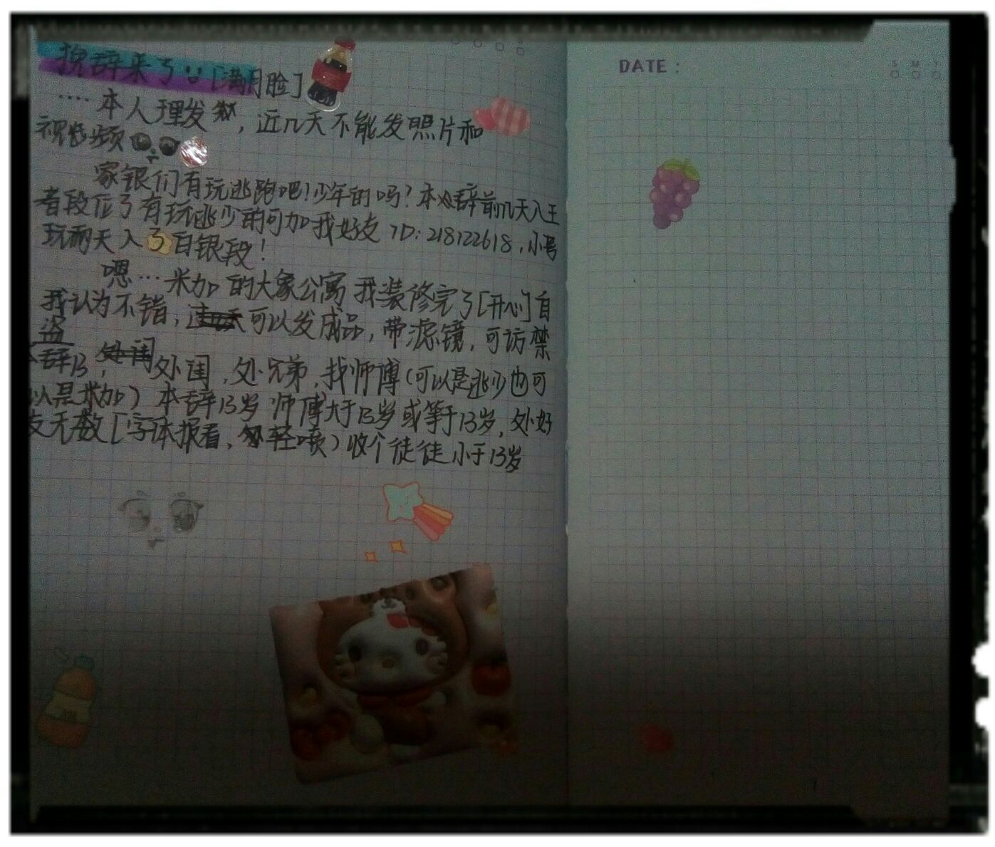处关系,可发本人照片。要求年龄12~14