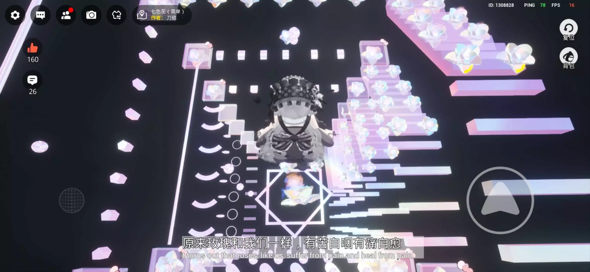 今天和好友玩了一款名字叫:七色花(简单)的地图。看封面就可以看出作者做这个地图很用心,于是我便迫不及待的加载进去。跑酷的前面一路畅通无阻,到中间变的不对劲了。正方形细框、洋葱圈和星星的关卡都消耗了我有一会儿的时间,最让我震惊一件事:掉下去居然会存档?!但一次的失败并没有磨灭我的信心,我鼓足了劲儿向前跑去。跑完星星关卡后,我在另一边等待好友,看到好友的进度停滞不前,跳星星的时候又掉到了下面的一层,她的意志动摇了,有些颓废地告诉我掉了一层这个消息。为了安慰她,我想着陪着她一起去下面一层,结果居然掉到了第一层!我苦笑着看向手机屏幕,想着:算了,重新开始就好好加油吧!我又反反复复的过了很多关卡, 在这个过程中好友已经到达了最后一层,但是在跳横着的细圆柱的过程中又不慎掉落了4层而决定放弃,退出了游戏。此时的我还差5层到达终点,看到好友退出我想:对我而言,这是一次挑战,既然我已经来到了这里,那就跑完剩下的路。又一次经历了很多的失败后,我来到了最后一层。此时汗也布满了我的手心,我看到了那所谓的细圆柱关卡,跳的过程我又一次地掉了3层,我不免感到有些绝望了……我感觉地图都快刻进脑子里了,但一想到抵达终点的成就感我又有了向前的动力。爬爬掉掉,我感觉抵达终点这件事好像对我来说已经变得遥不可及。我的手麻木地点着方向键和跳跃键,为差一点的失误叹息。不知是哪一次,等我回过神来时已经到达了细圆柱关卡的对面。这个惊喜令我猝不及防,我颤抖着手过了两个走直线圆柱的关卡,终于抵达了终点!之前的所有重复与挫败都化成了胸腔的热流,嘴角根本压不住上扬,疲惫也感到烟消云散了!感谢那个不曾放弃的自己!这次的经历真的是就像地图中所说“有苦自咽,有痛自愈”了。