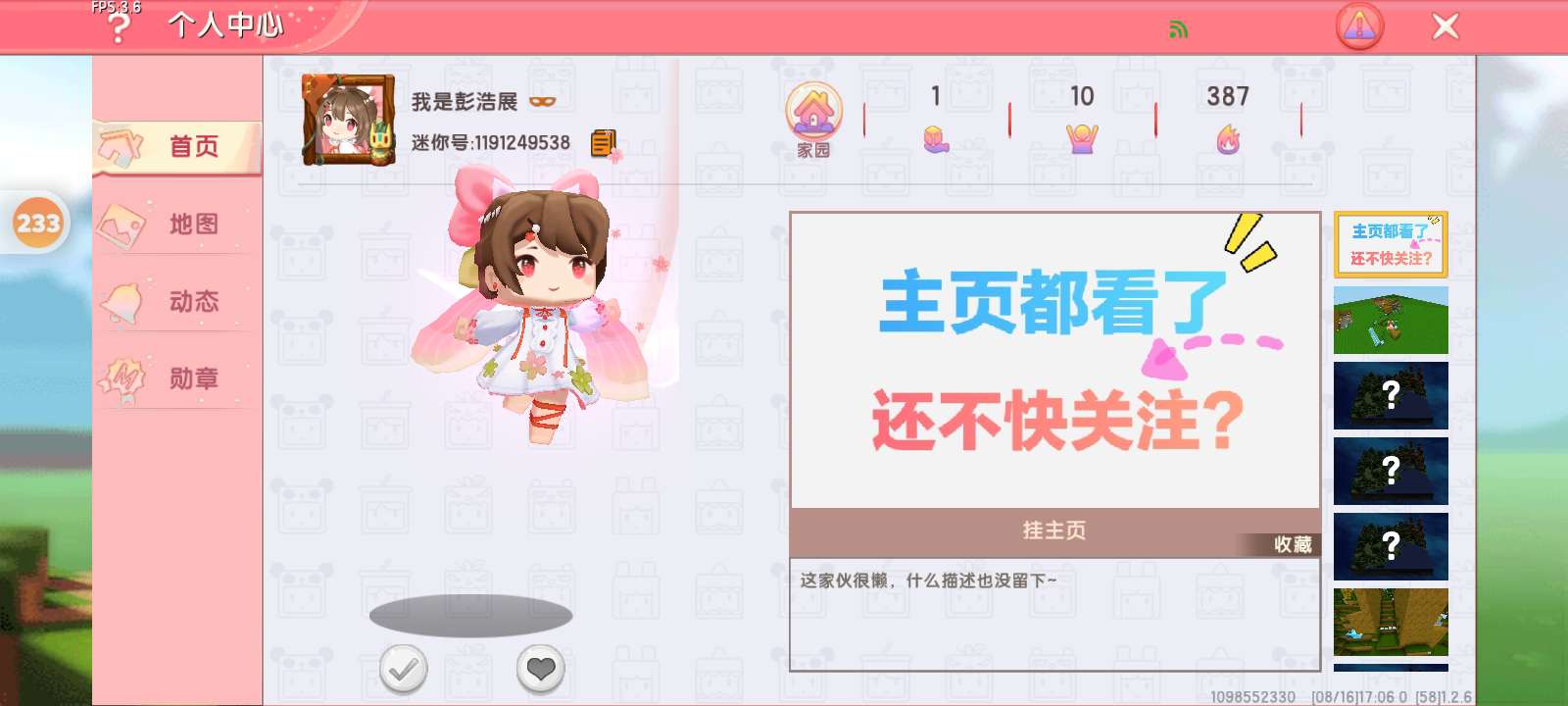 我想找徒弟,本人皮肤不多,技术不好,希望我找的徒弟不会介意╮(﹀_﹀)╭我是一个新手,我以后会一直支持迷你世界的,同意的在评论区扣上1