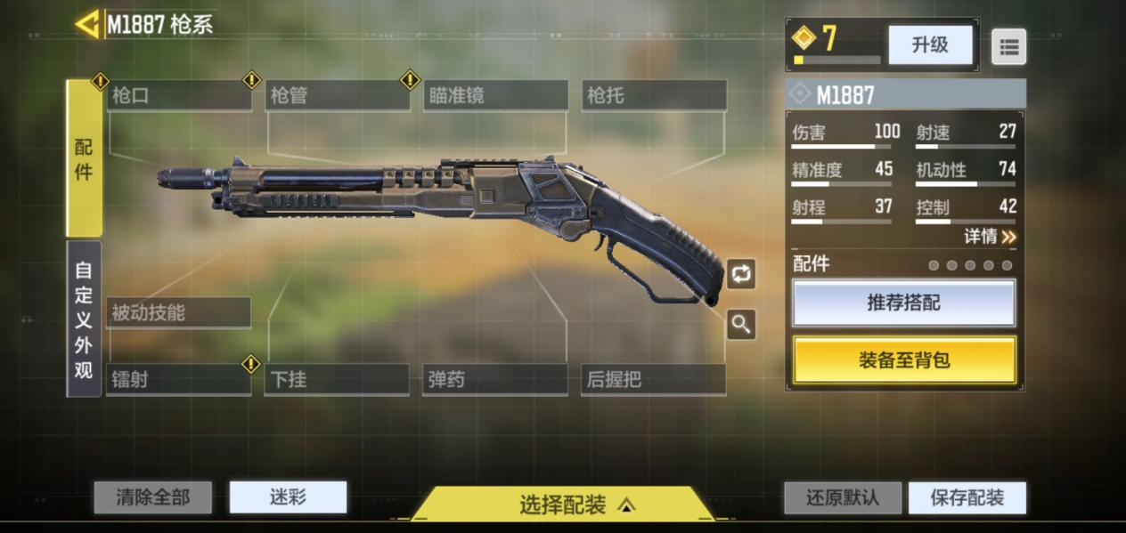 后握把选择斑点握把皮,增加开镜速度和跑射速度。