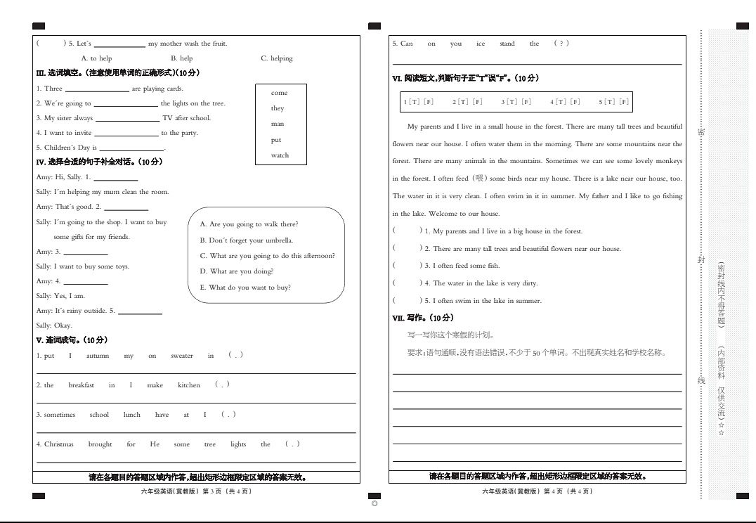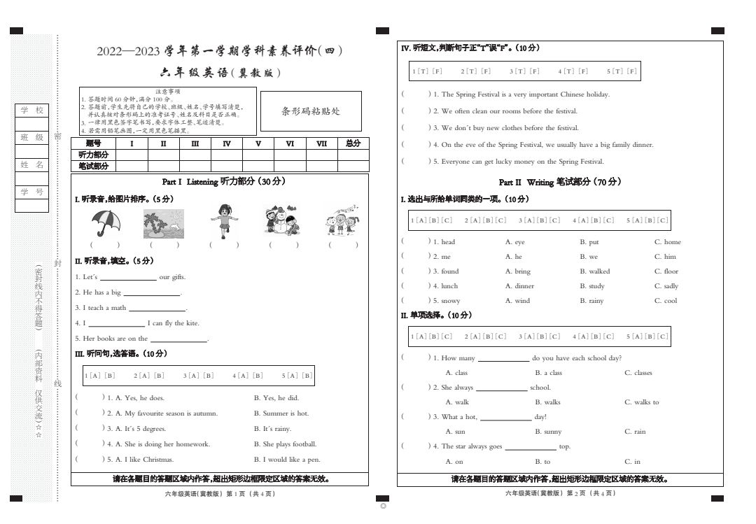 六年级英语期末卷💩
