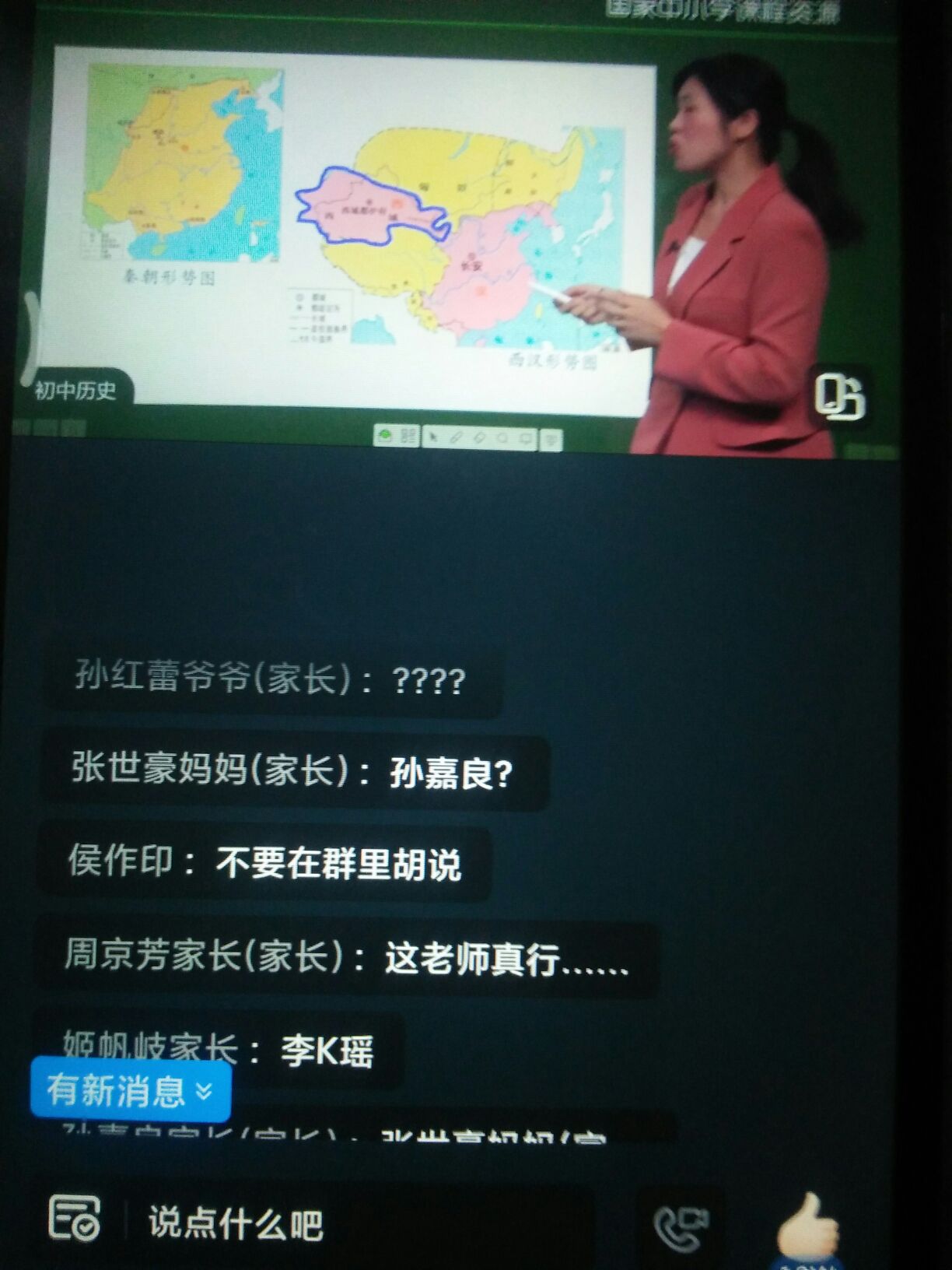 上网课聊天侯作印历史老师