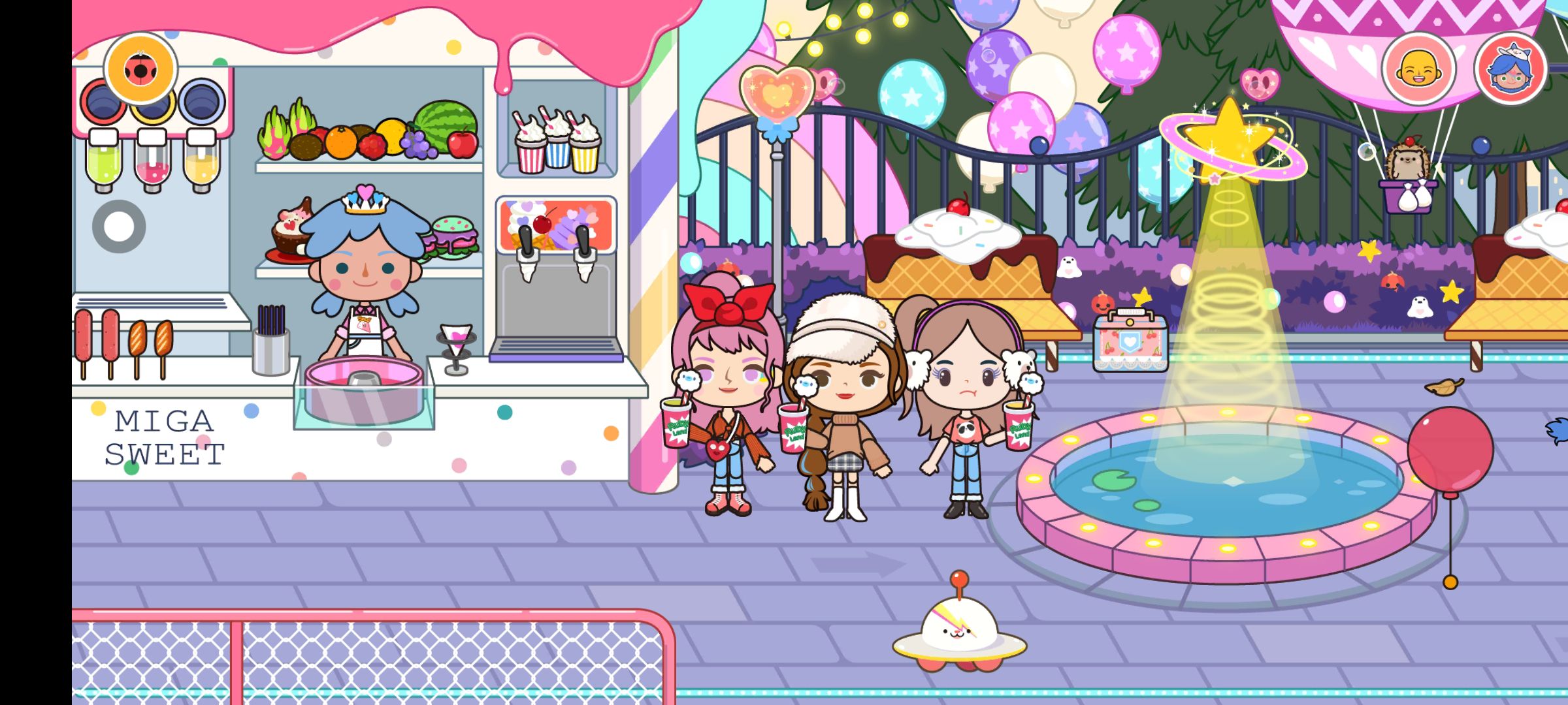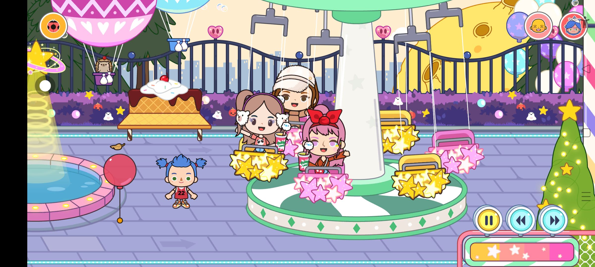 三个人一起去吃东西,一起去游乐场玩