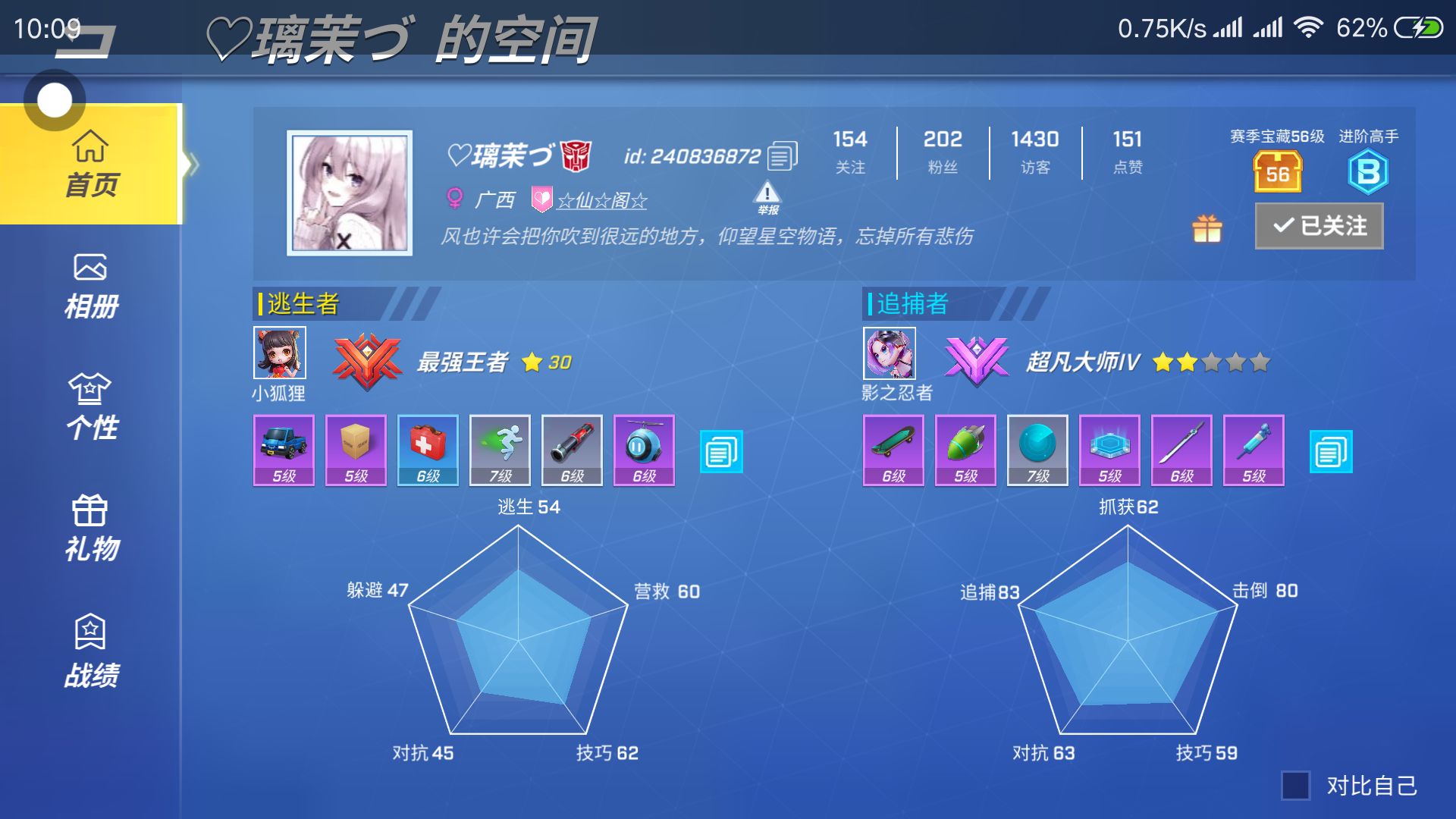 组队友,我这个是小号,昨天刚创的。我大号逃生:王者 追捕:超凡Iv,我技术还是从前,不嫌弃的可以加,小号lD:249754864,大号lD:240836872