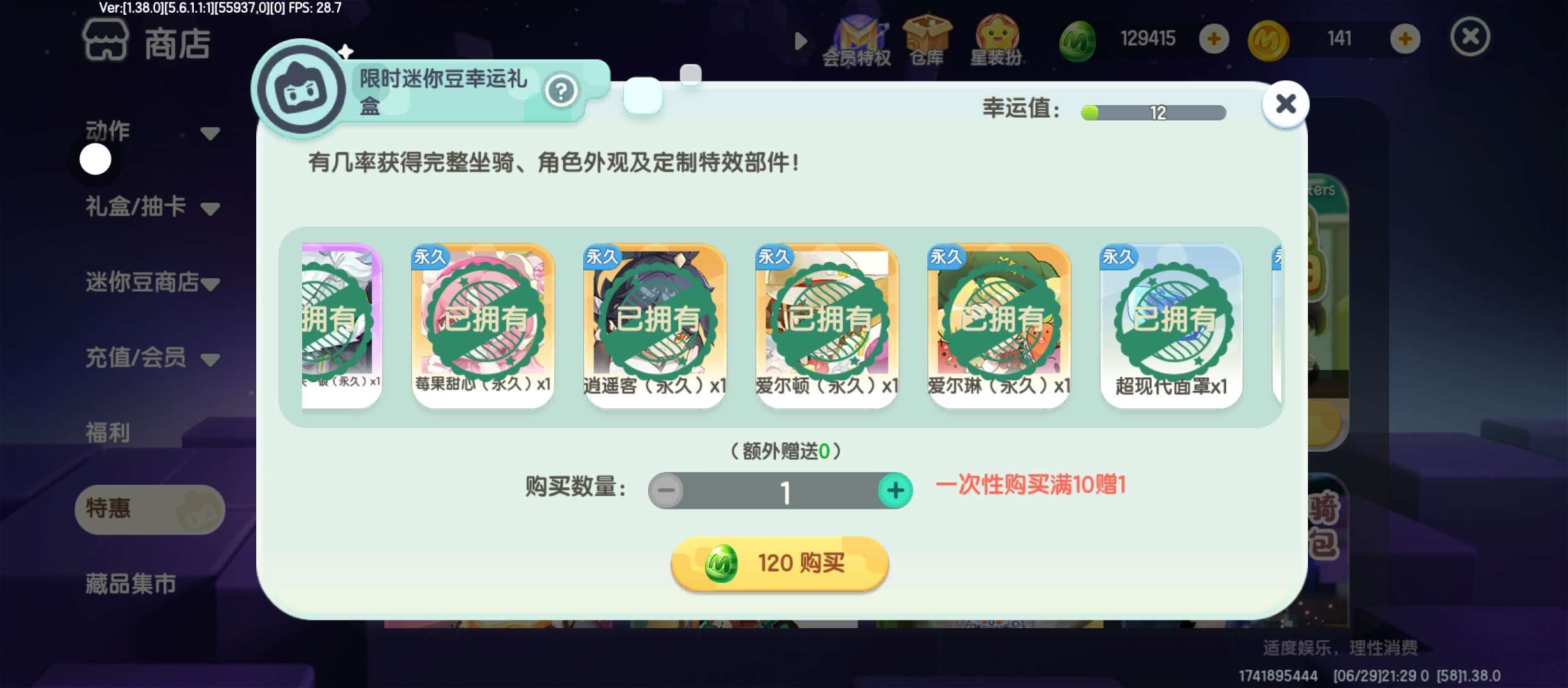 全是迷你豆抽的(除了幻音和特工是买的),现在还剩十万多个迷你豆,什么实力不用多说😜