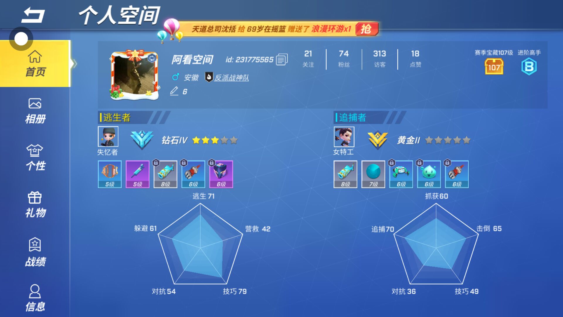 谁是超级锦鲤?完成任务抽限定盲盒!快来下载游戏并在活动界面填写我的口令:#EU62X2ADD,一起来玩《逃跑吧!少年》吧!~