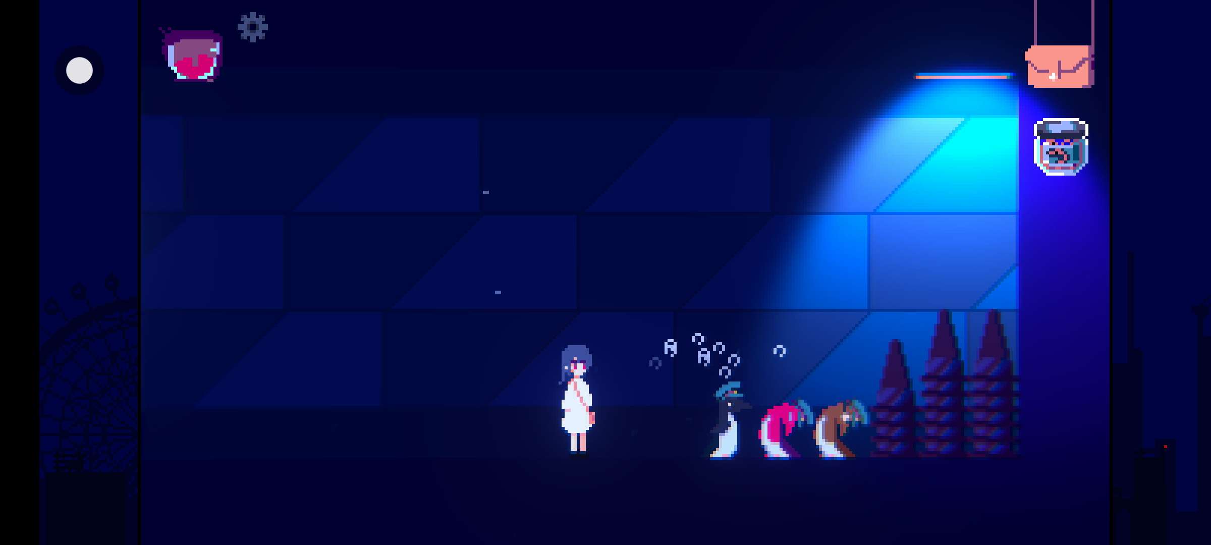 如果你点开她身后的抽屉,在点到她摔倒,她就会有一个回头看的动作