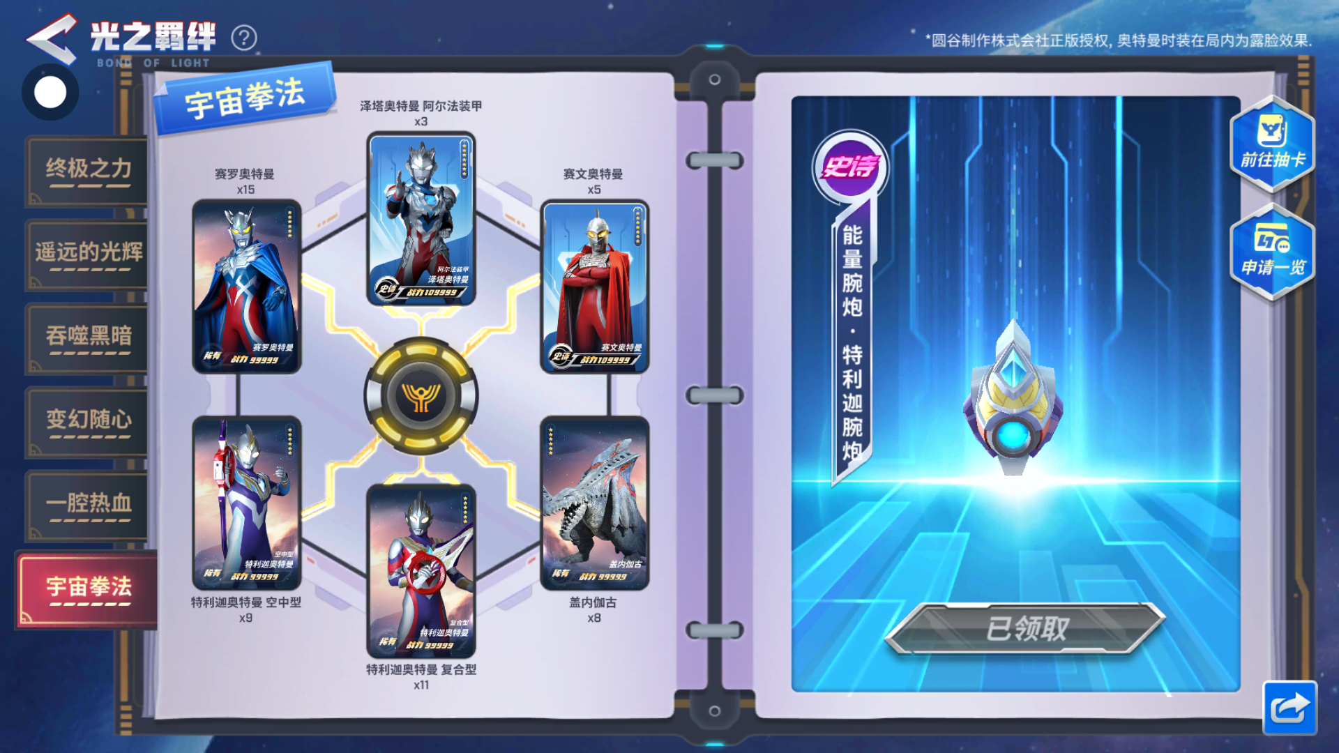 全有了,哈哈太开心了(还打算不要命石者的了,没想到今天单抽抽到了贝利亚😇)