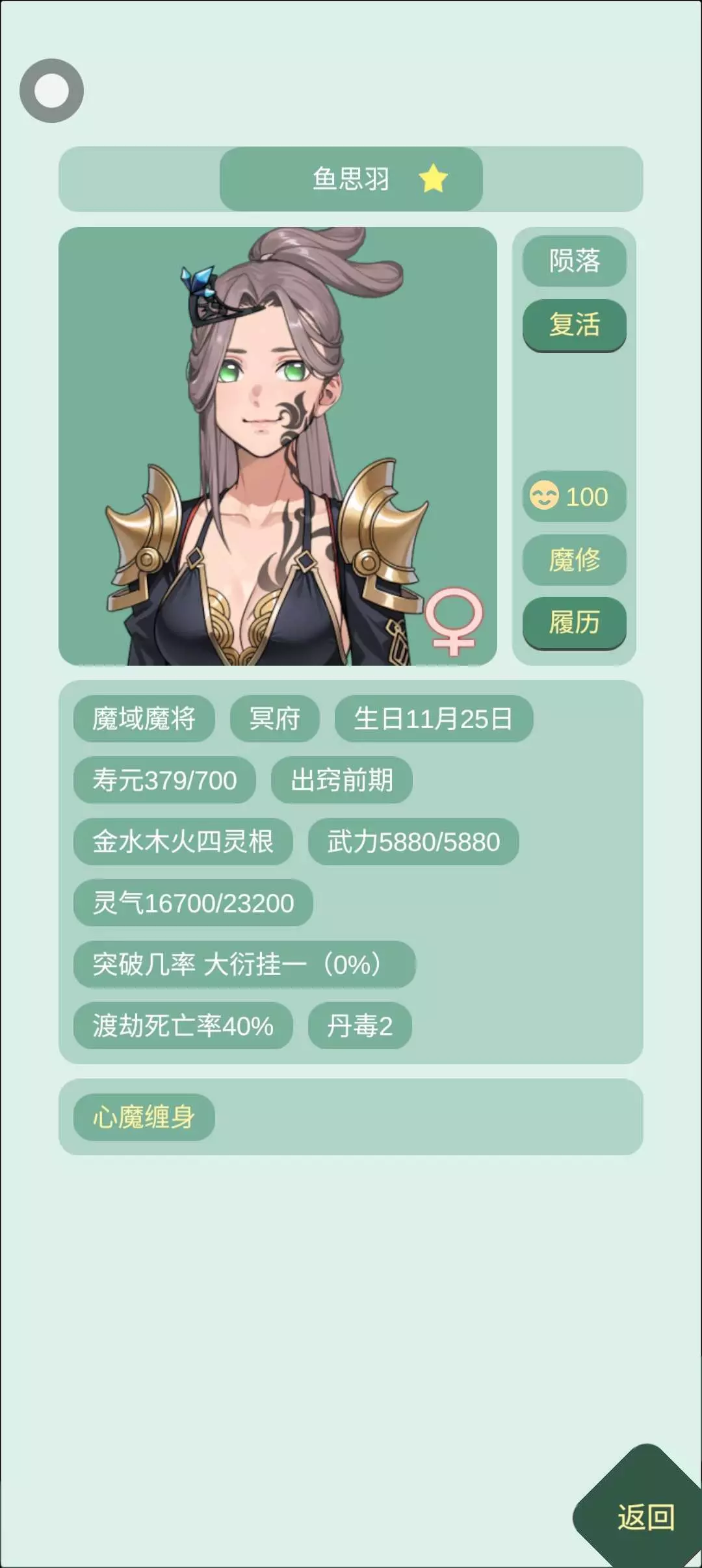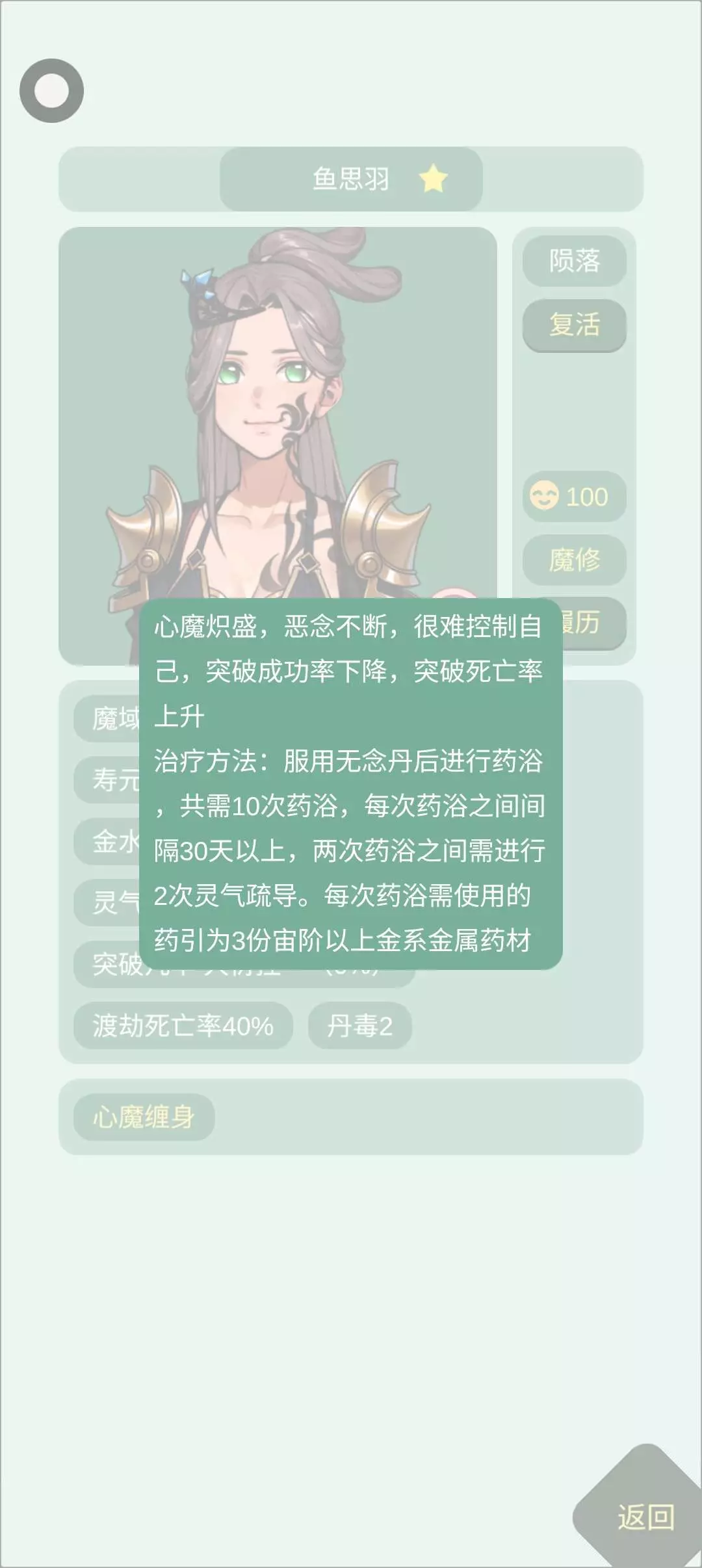 怪我的无能 没有能力救你 好久之前治你就看到你有心魔缠身 一开始看了看要怎么制作那个丹药 结果没有七宝灵枝 后面想买也没有 就忘记了 直到后面的后面才想起你还有这种病没治 想治又还是没有七宝灵枝 搜了搜要去幻蜃海才可以找到 为了救你 去了好几次结果一下子给干回来了 怪我的无能 舍不得你死😭 全都怪我~不该沉默时沉默~😭😭😭