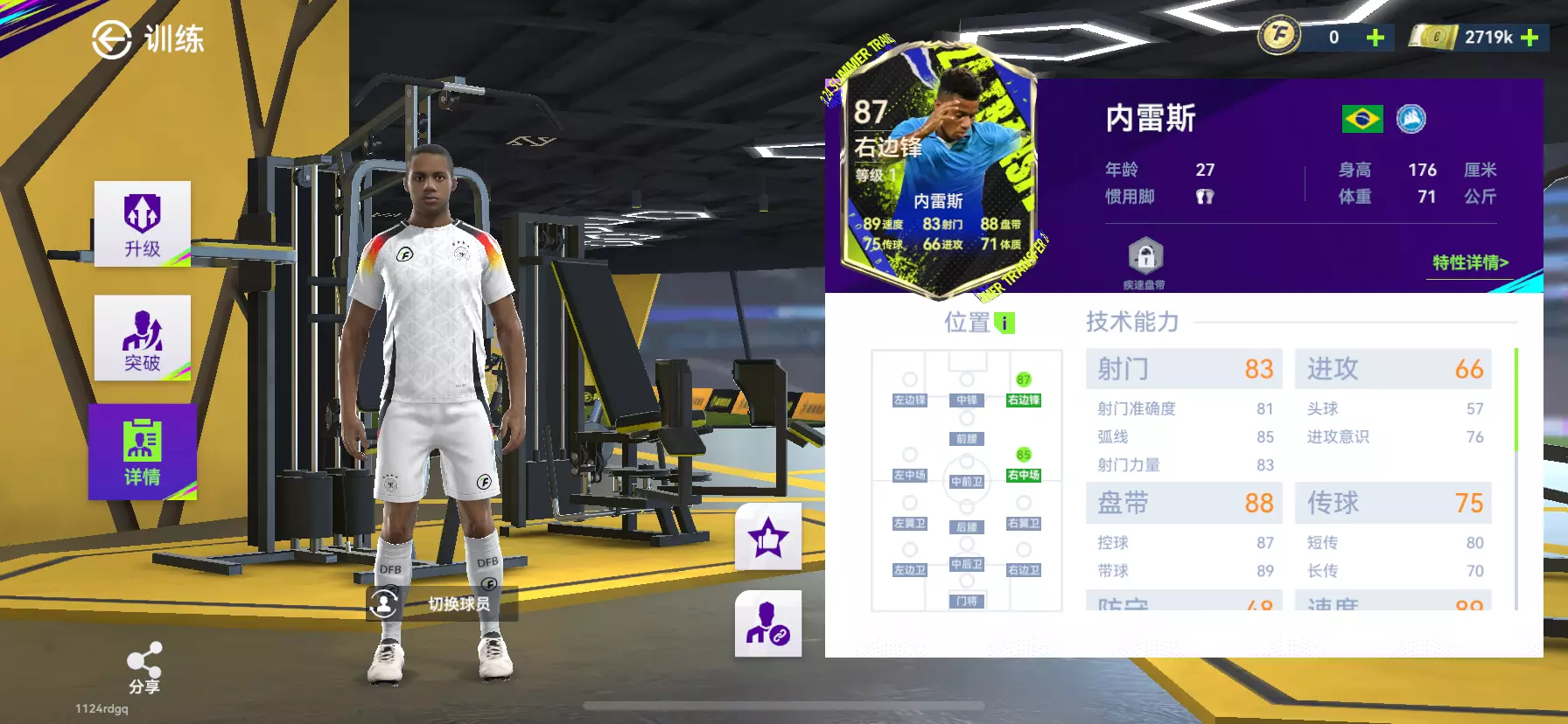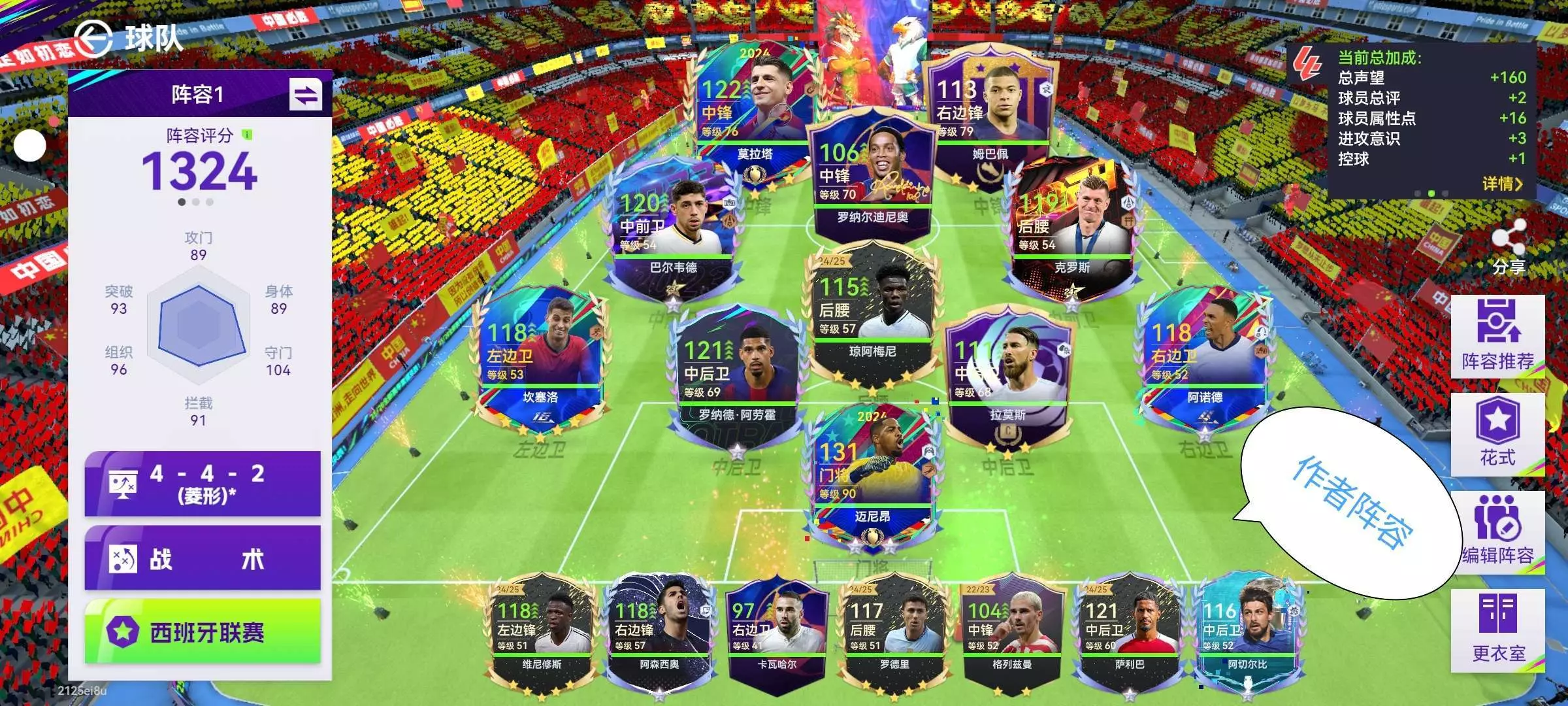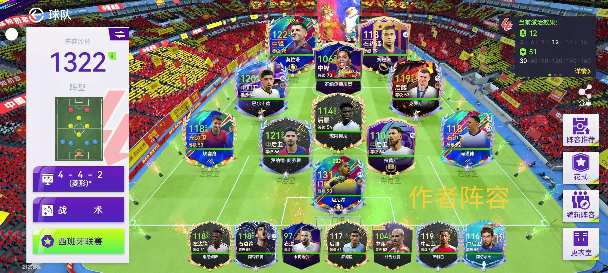 最后一张图就是我现在的阵容,大家给点意见。我也是有真成正的左后卫了。不容易啊兄弟们😭