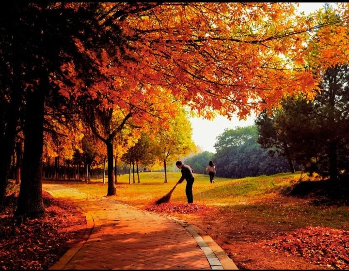 橙色的枫叶,黄色的银树叶。