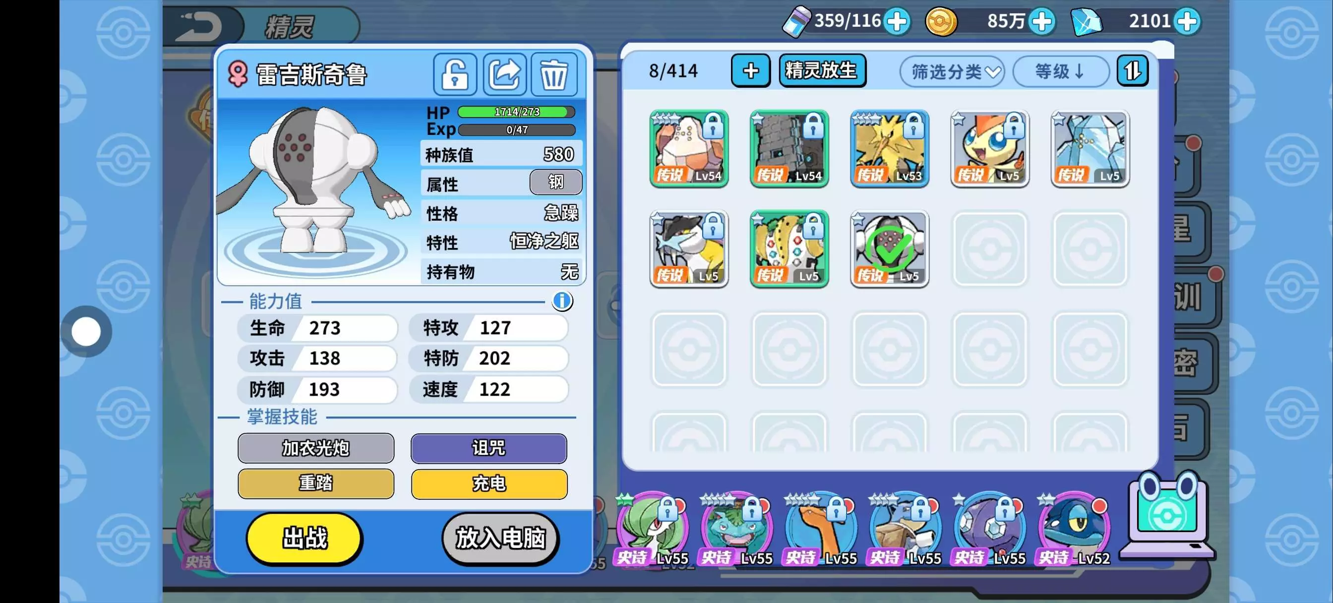 今天狩猎场遇到了重复的呱呱泡蛙用精灵球还收复了雷吉斯奇鲁。