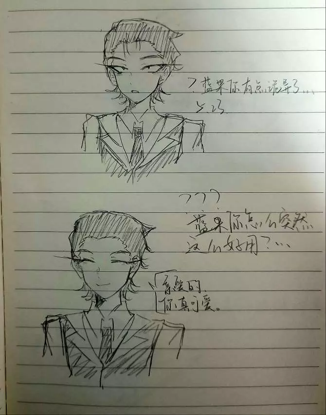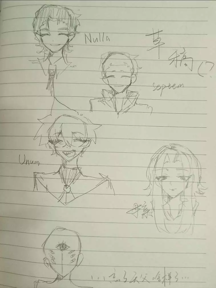 拍的有点糊 凑合先看看吧 还有好几张没拍 因为我回来的有点晚 吃了个橘子又上了个大号 然后匆忙拍了几张宿舍就熄灯了😢明天有机会的话我重新拍一下 第一张我打算明天涂个色(主播不怎么会上色 不过彩笔是有的。(蓝果全套手账笔。))对了 如果哪里感觉画的怪怪的麻烦指出来 我改😭(我是不会放弃画nulla的……)早知道会遇见nulla 两年前我就开始死命练画成男 只恨自己画技太差。TvT