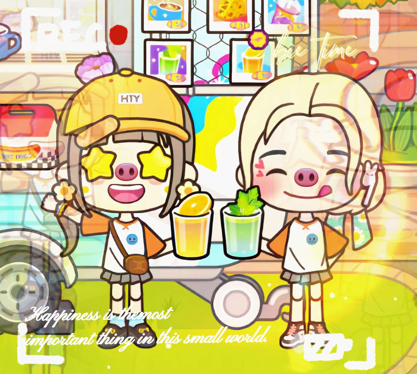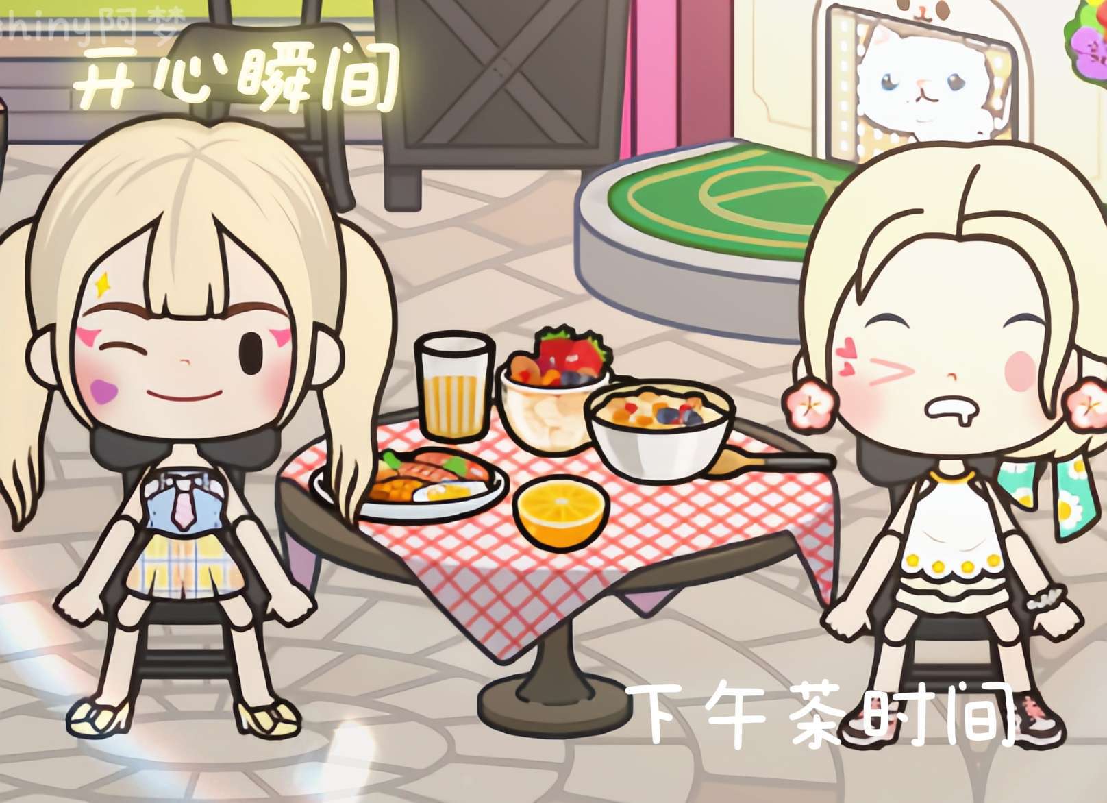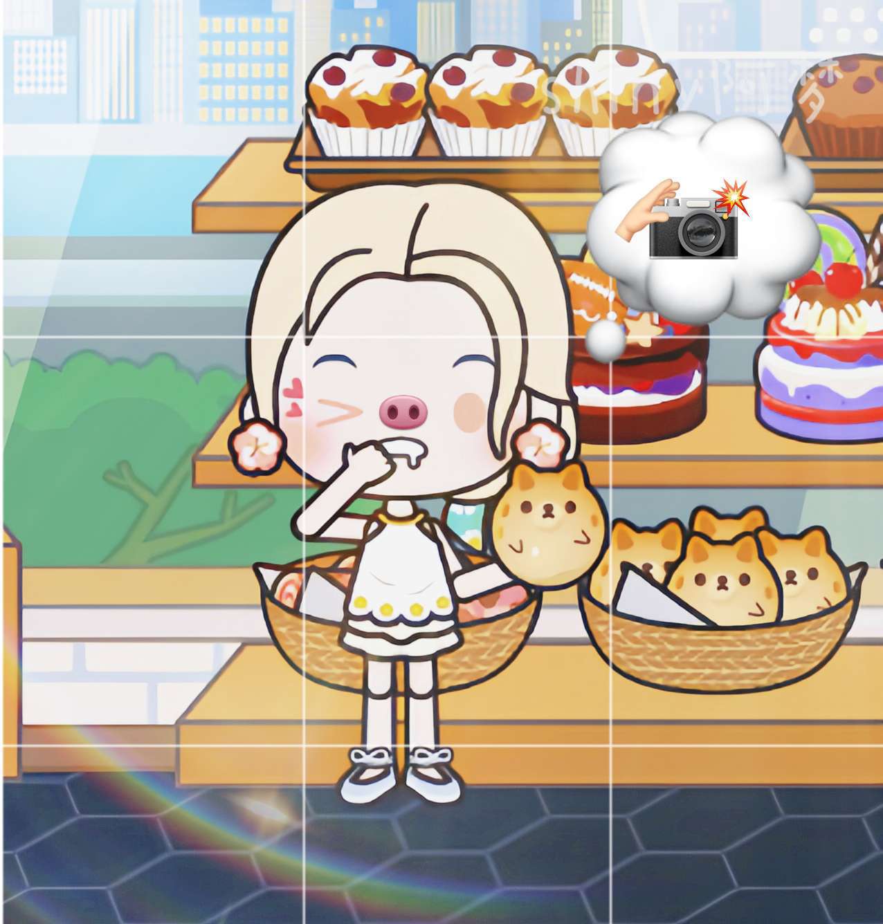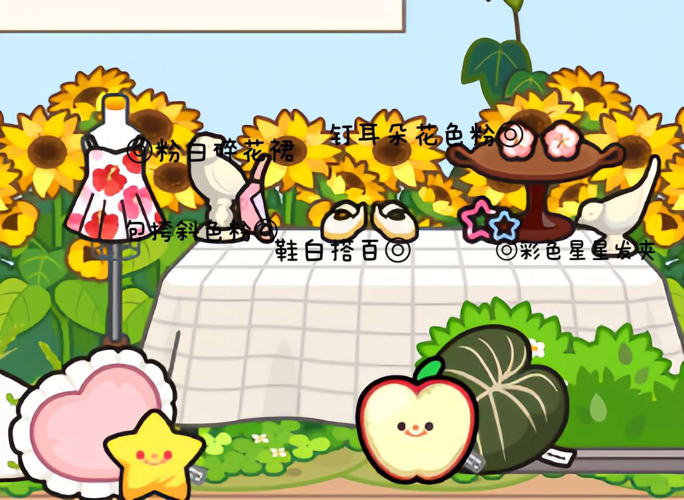 这套衣服比较适合可爱、呆萌的姐妹们,整体色调偏粉色,很适合出游穿着打卡拍照