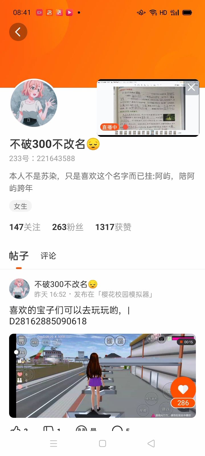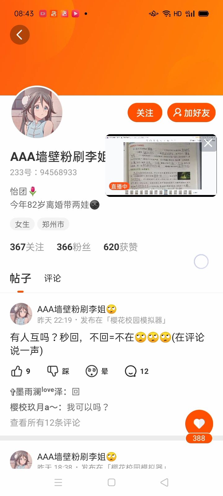 想找个姐姐和师傅!1、300粉以上!2、12~15 岁!
