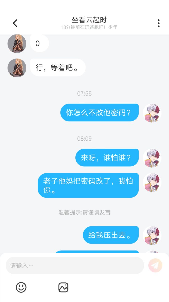 坐看云起时是专门盗号的,别信他。我就被他盗过了我反应力很快。
