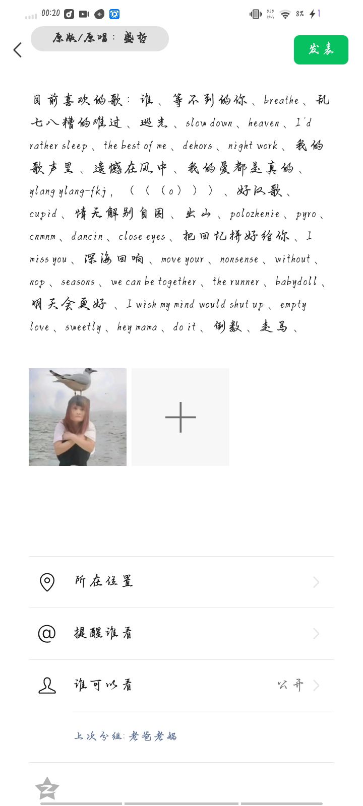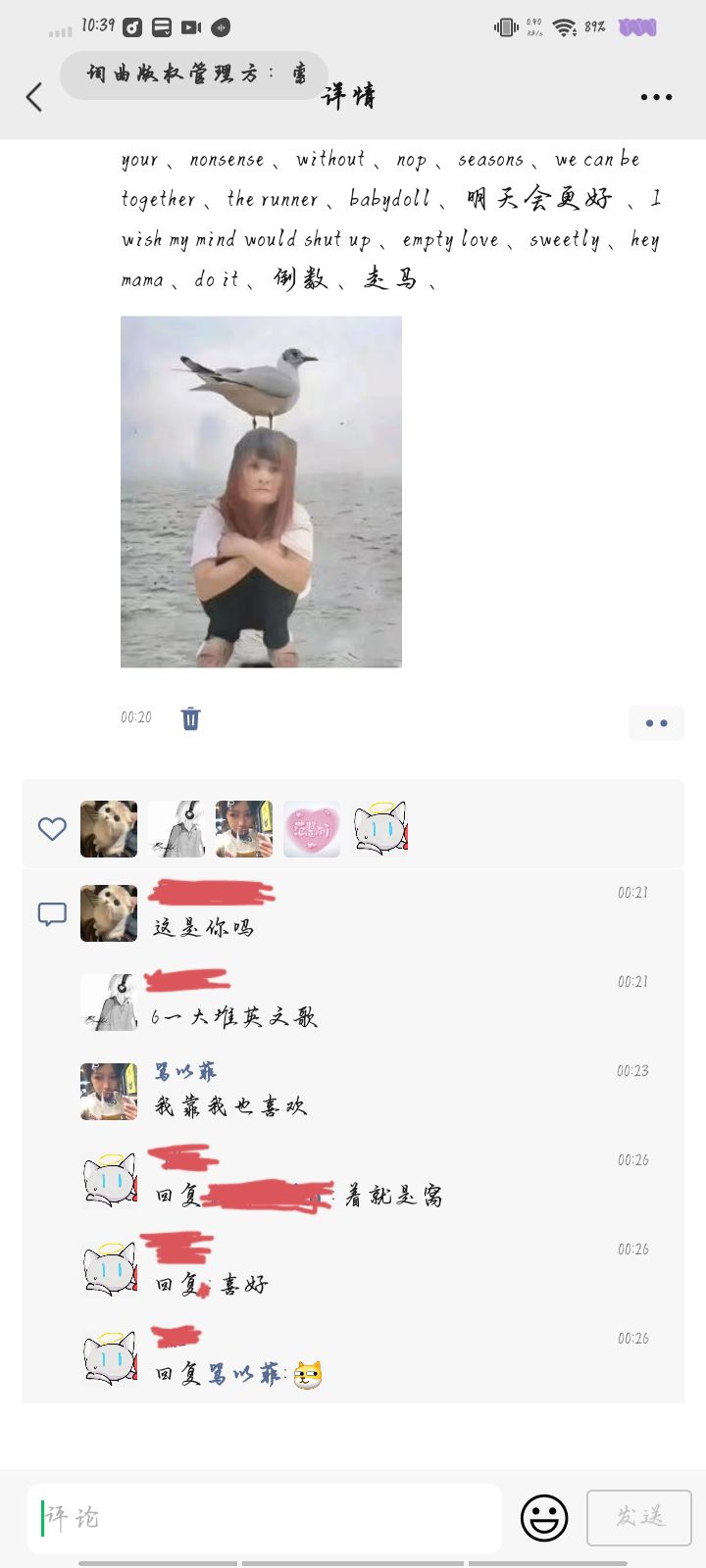谁懂啊,我凌晨 emo 发个朋友圈以为会没有人赞的,我也不在意结果一发出去就有五赞了,想要哪首歌可以跟我说,我跟你们的音乐喜好不同