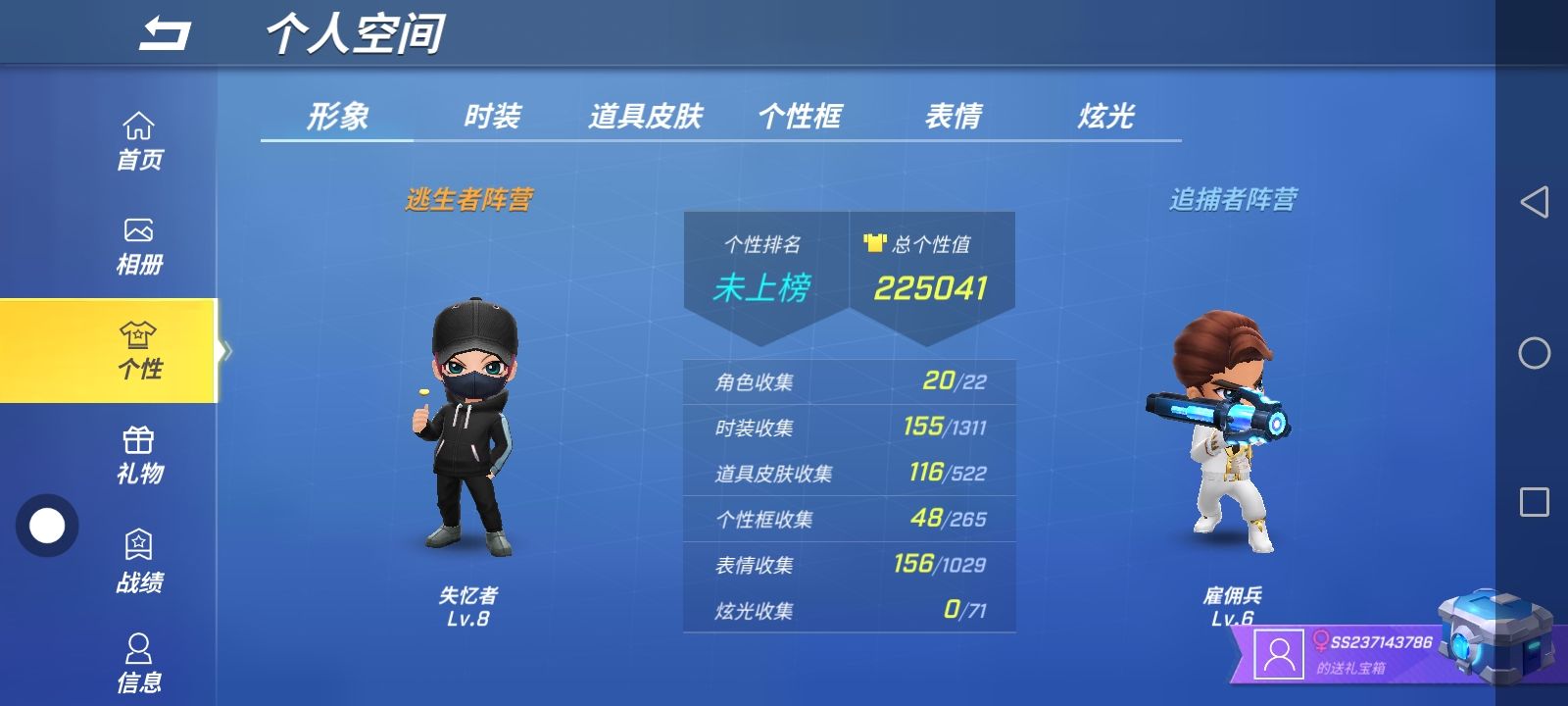 把我小号逃生上100星,把我大号送他