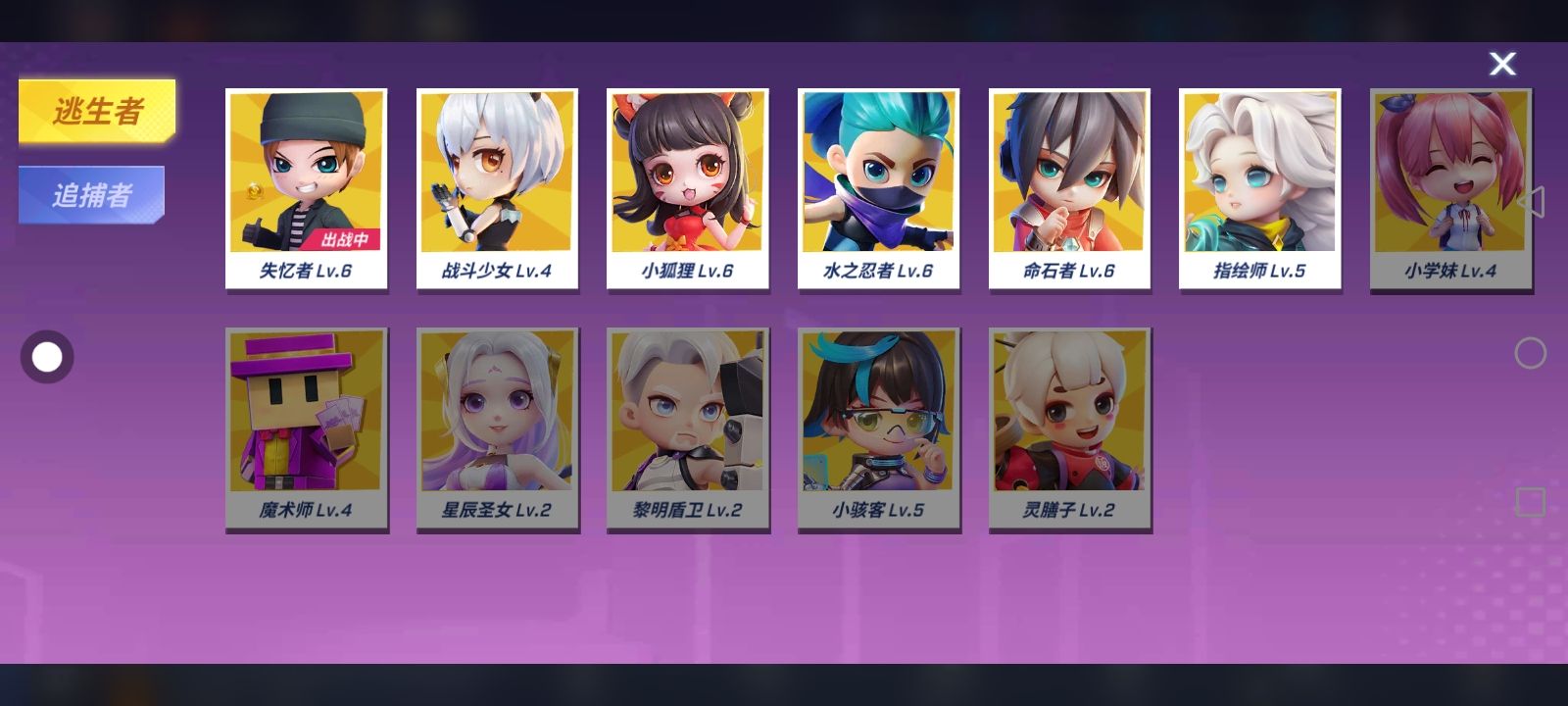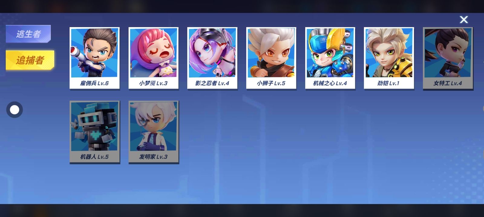 找师傅,逃生50星以上,追捕10星以上,找不到也行,