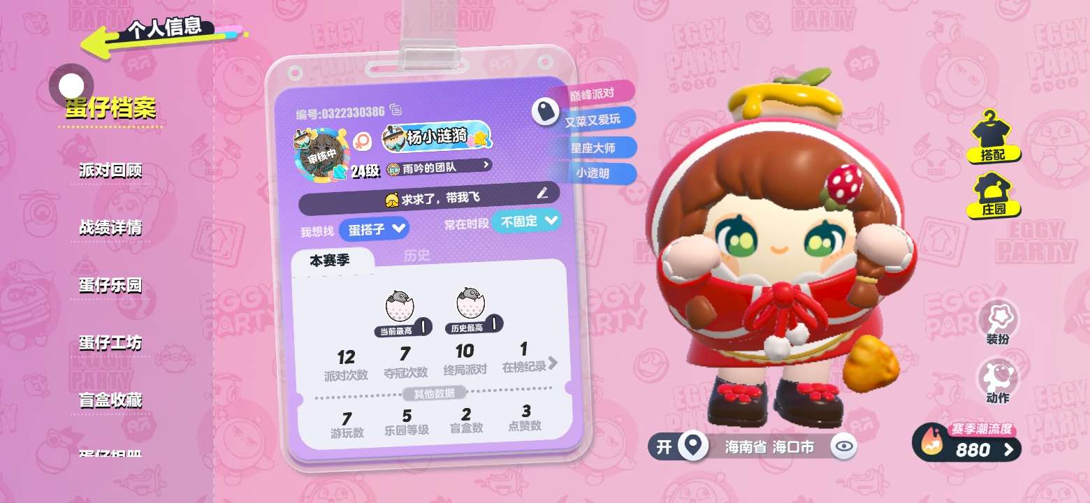 有谁可以加个好友蛋搭子无限蛋段位本人蛋仔名:杨小涟漪