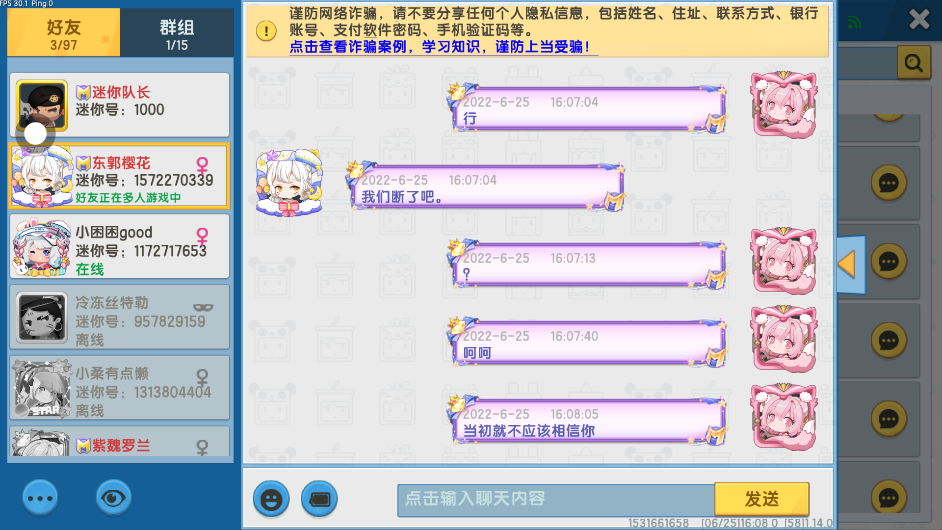 有人给我吃的吗?🍑=白天鹅🍇=月无双🍌=青弦🎂=悠妮🍐=灵瑶🍋=银铃🍉=爱莉丝🍰=