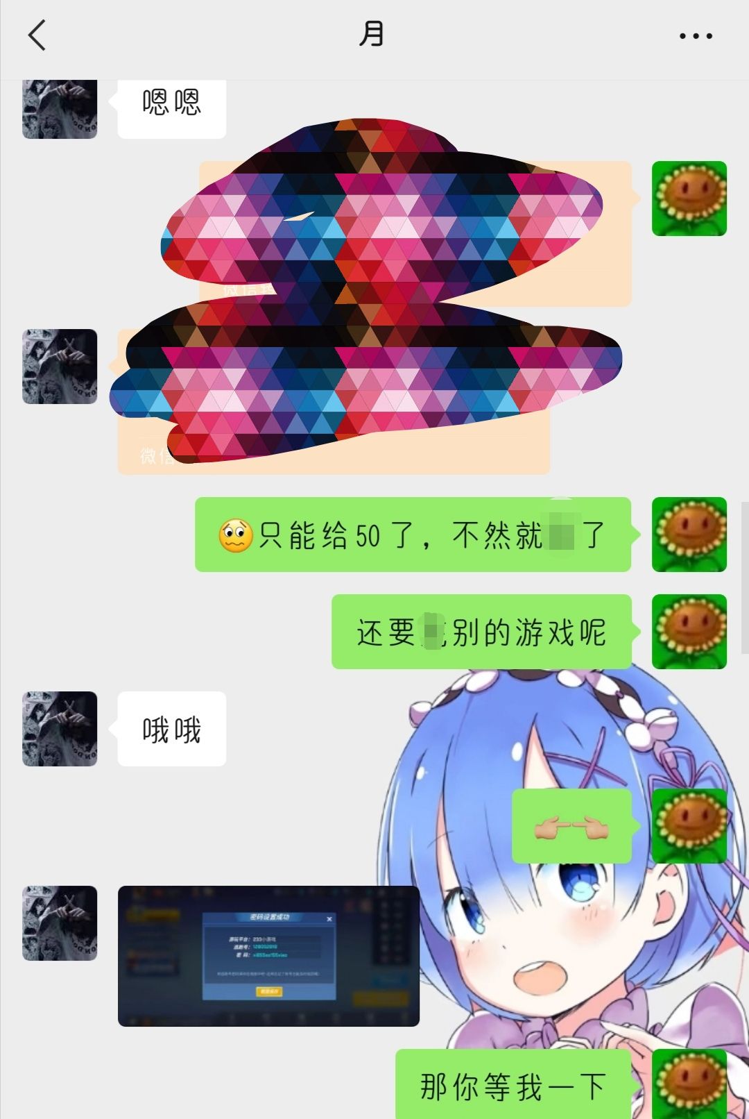刚开始他说迈号迈30,我们就私信了呗,我觉得他这号挺好迈30有点亏还多给了,看他头像是个女生,名字叫做月,一直发熊二表情包,我就没在意,我觉得他不会骗人,给他转完钱之后,他一直找理由说什么充手册之类的给我要钱,后来他还找我要我就说我没钱了她就直接和我说,互删吧,删完之后我说去登游戏吧,因为我充了10块说抽过奖什么,结果登不上去,我以为是我弄错密码了,我就找我朋友弄,结果也登不上去,咱就是说为什么要骗人呢?你光宗耀祖呀,放心,我肯定追究到底,70当买了个教训吧