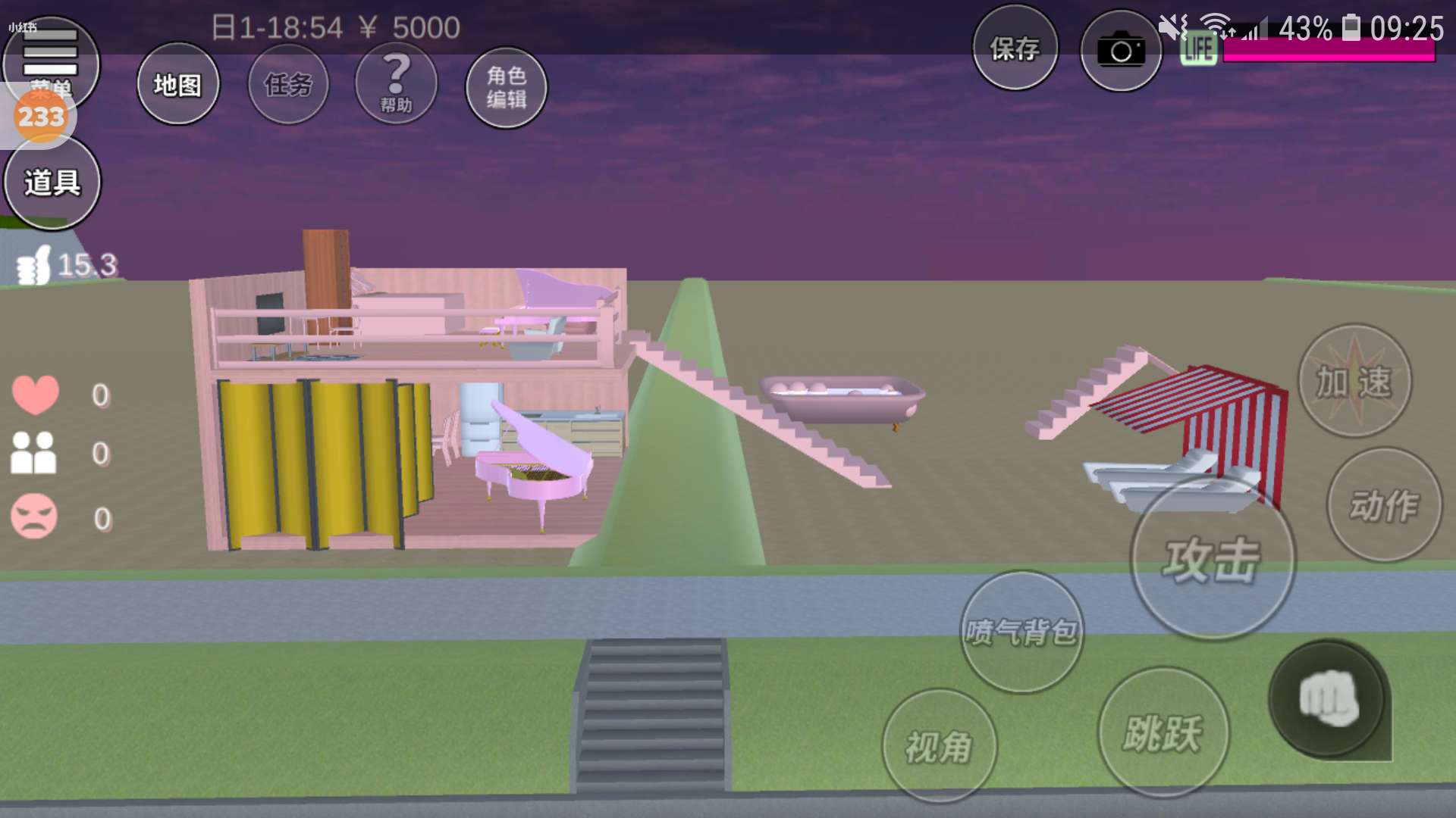 外面还有一个粉色的浴缸
