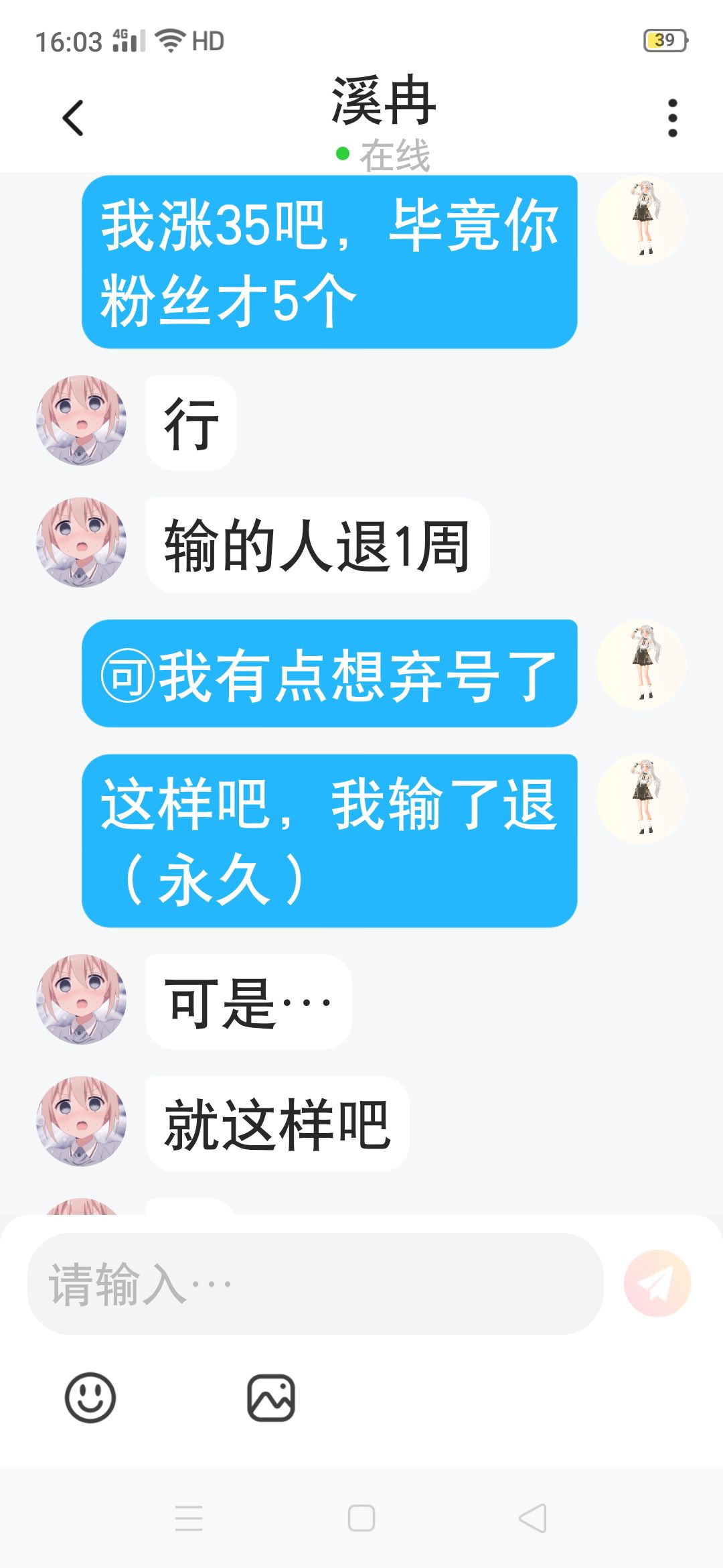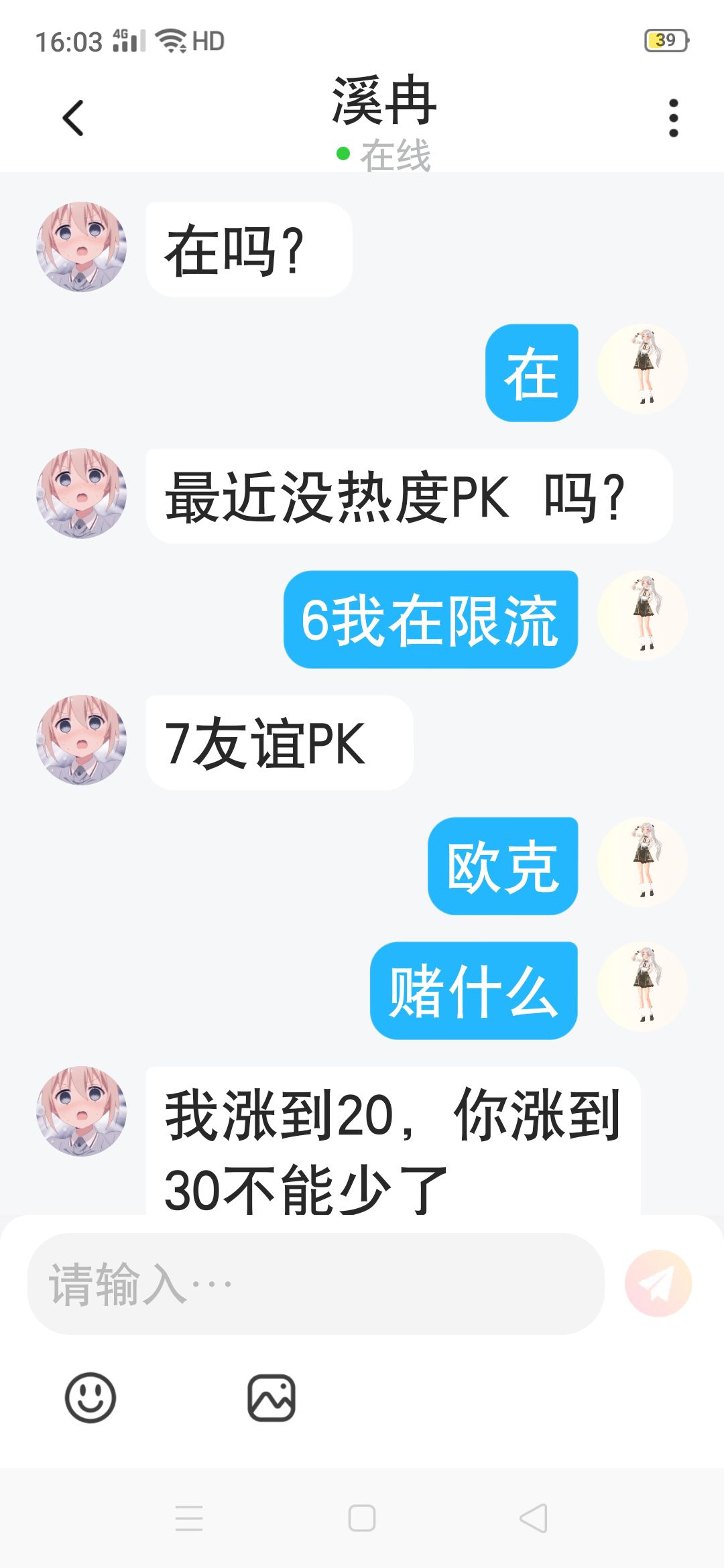 【友谊PK】对面:@溪冉🙈涨35✨我输退网🌚