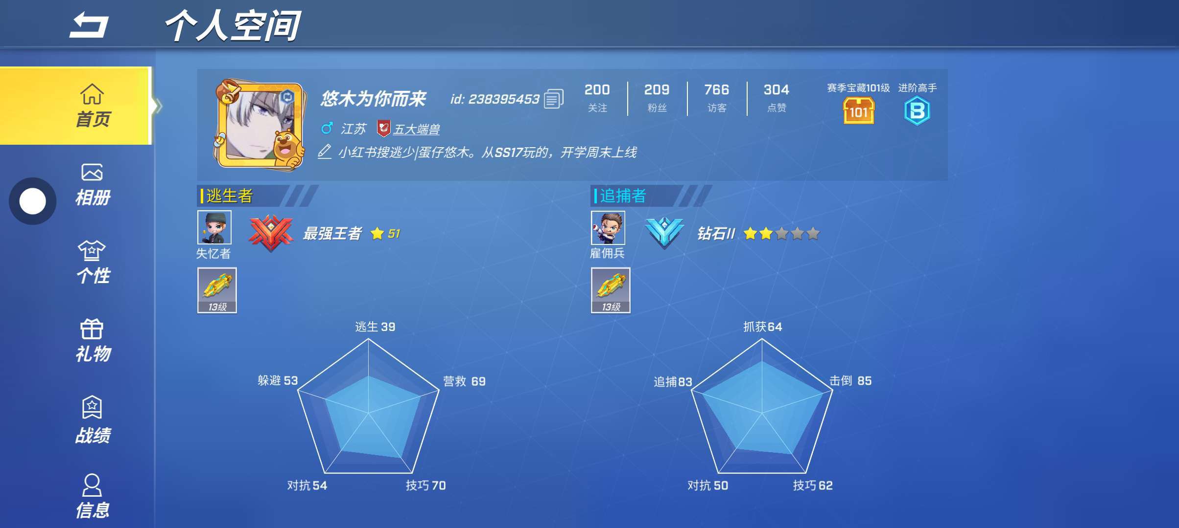 谁能做我师傅???我现在逃生者才钻石,追捕者才黄金,刚玩不到一个月