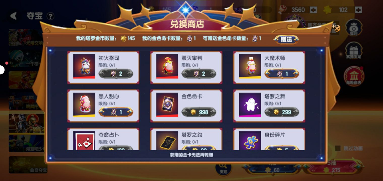 几个月前的双子占星阁第2抽出的精灵花园刚送人,昨天狮子占星阁第1抽出的个烟花,,,而且占星币还是别人送的,今天曲相思的第1抽把去年我抽第5抽出的背饰又给出了😭你们说我怎么办去年80多买的今天6块钱