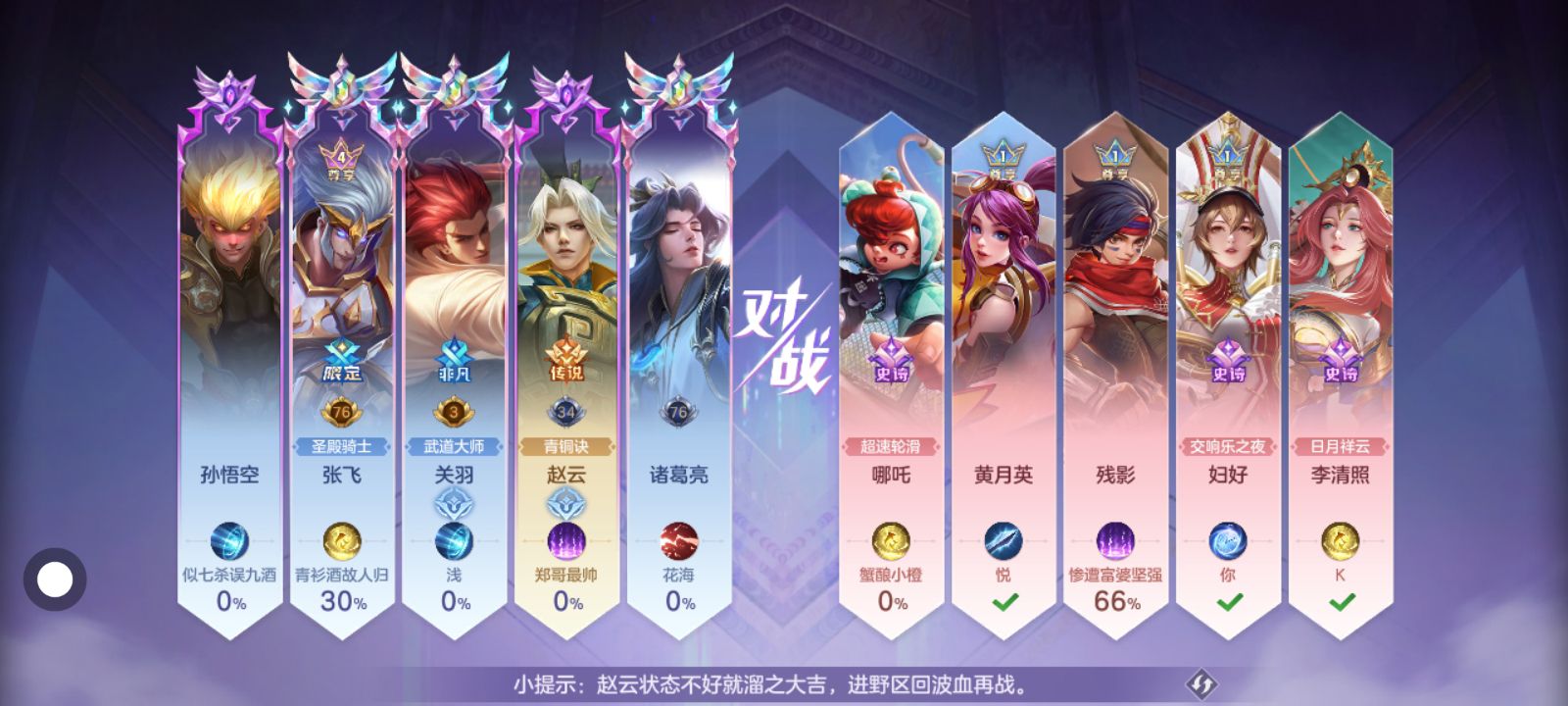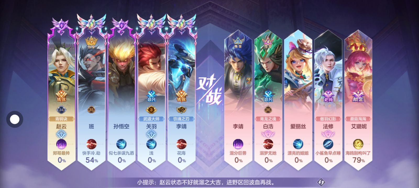 王者的人一来,队友一个比一个菜,孙悟空跟人脸贴脸打,妇好一级被单杀,玩个法师整局待在中路养老,真的打个排名好难啊,一群拖后腿的摆子,不会玩的去打人机,别在排位匹配坑人,再不行滚回王者,真的要崩溃了😭😭😭