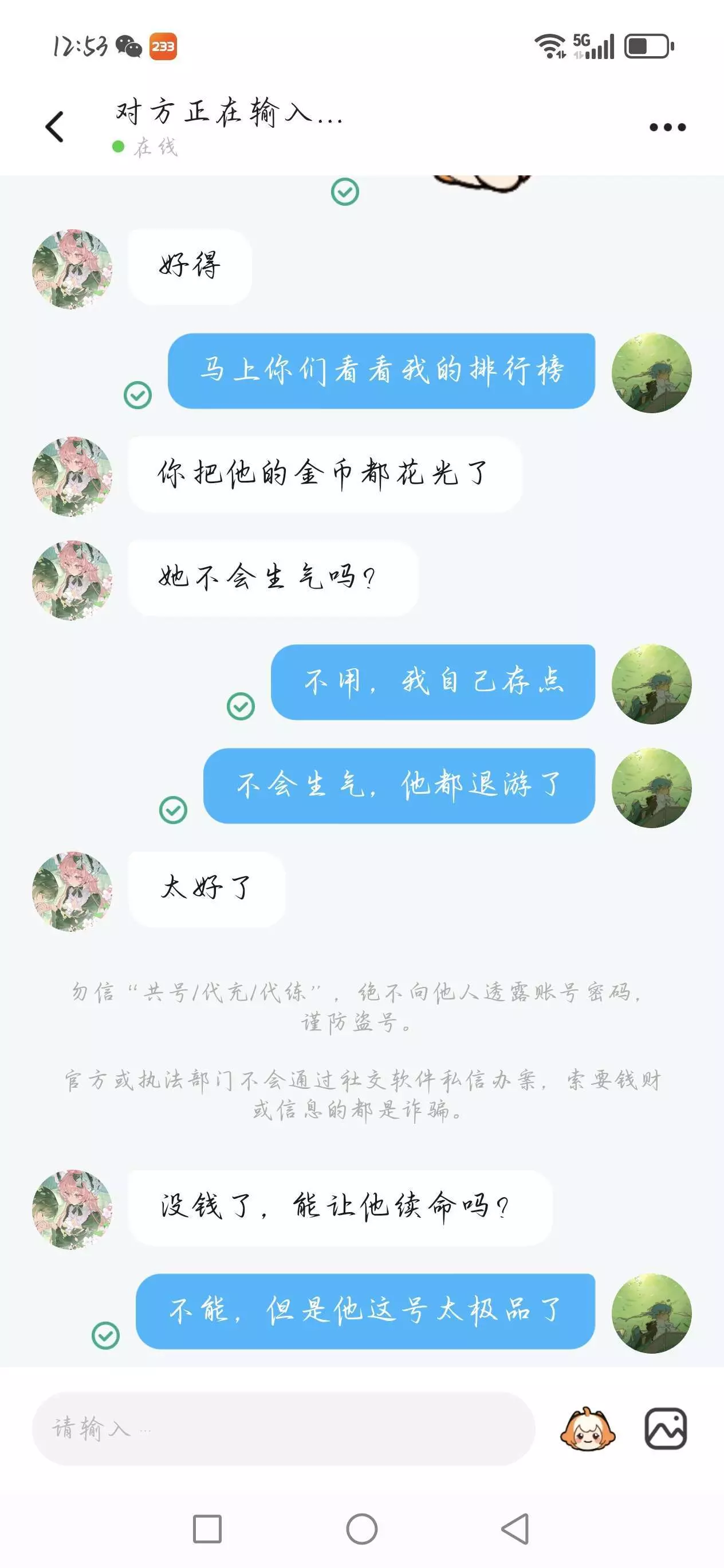 能不能搞清楚状况?别人的付出不是理所当然的,别把没礼貌当个性,尊重是相互的,不是让你拿来消费的。400多的金币花的只剩9个😅